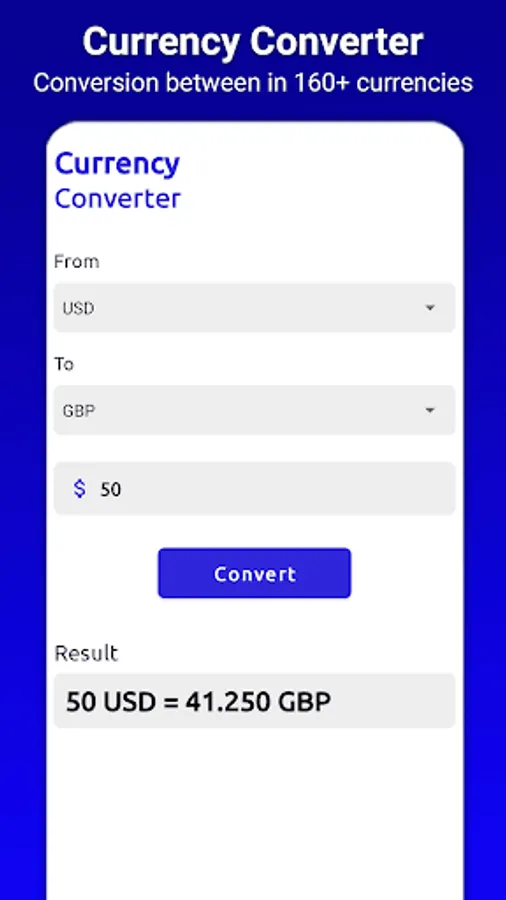 Currency converter calculator is used to do conversion between different currencies, this app include 160+ different currencies.