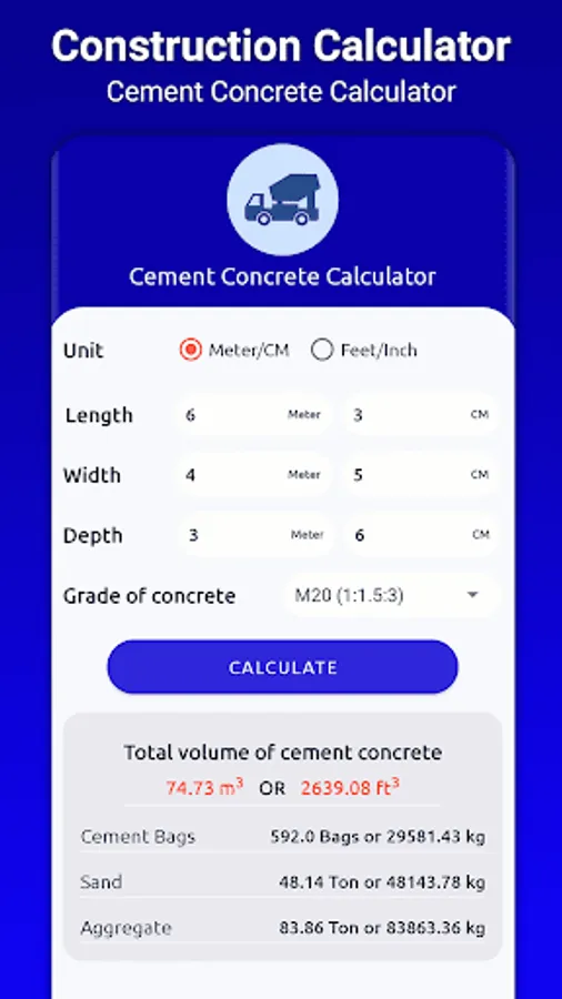 ⦁ Cement Concrete Calculator