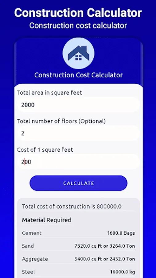 ⦁ Construction Cost Calculator