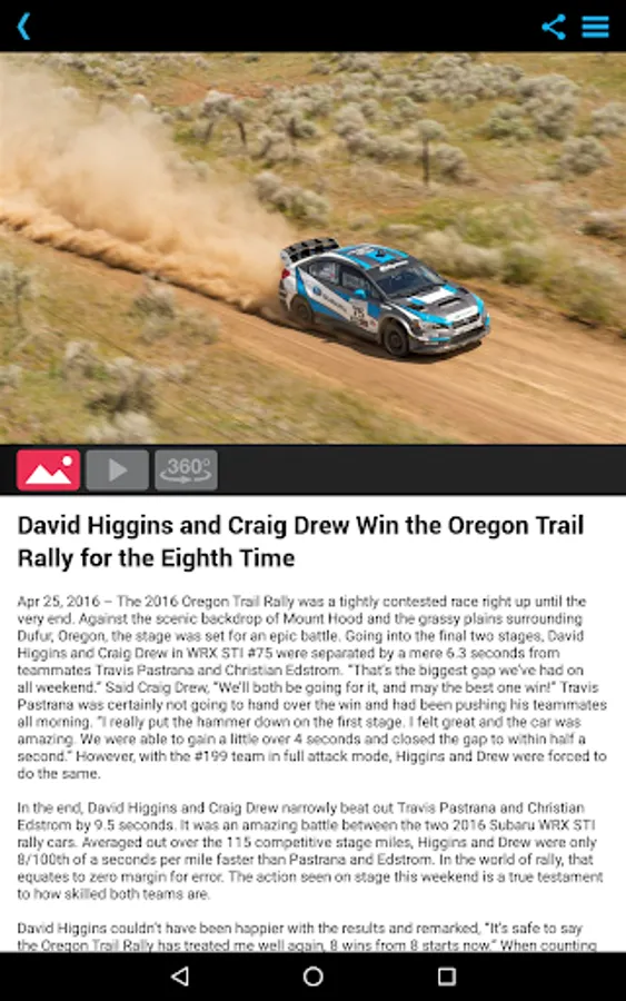 Enjoy, and share, the continually growing library of award-winning 360º racing videos as well as the critically-acclaimed Launch Control video series and gorgeous team photography, all while staying up to date with your favorite Subaru Rally Team USA drivers and cars.