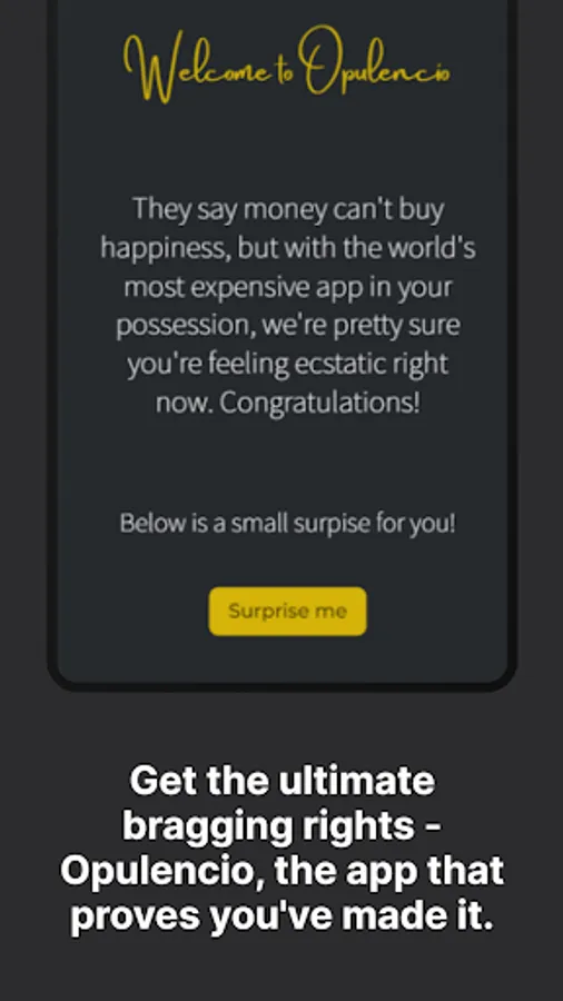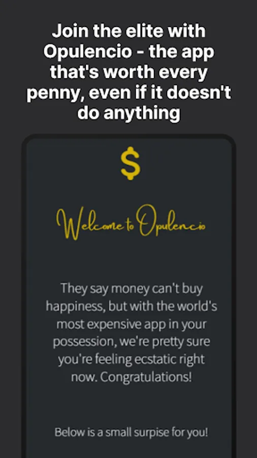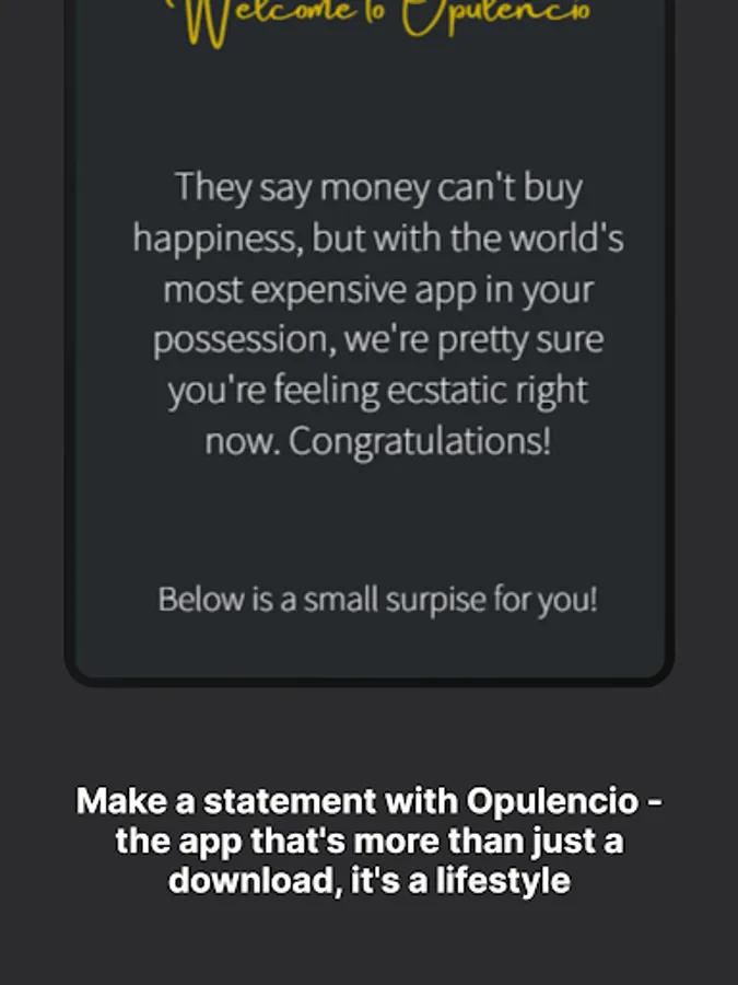 Opulencio is designed to appeal to those who value luxury and extravagance, as well as to those who are looking for a unique way to show off their wealth. Upon purchasing the app, users will find that it is essentially an empty shell, with no functionality or features to speak of.