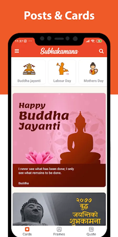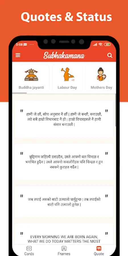 Single Application for Social Media Status and Quotes, Photo Frames and eCards for subhakamana messages on different occasions and events in English and Nepali Languages. The application consists of templates, frames and status for more than 50 categories and more than thousand templates and frames. The application is collection of quotes and status in Nepali and English Languages for different social media like facebook, WhatsApp, twitter, linkedin, messenger, skype, wechat, viber etc..
