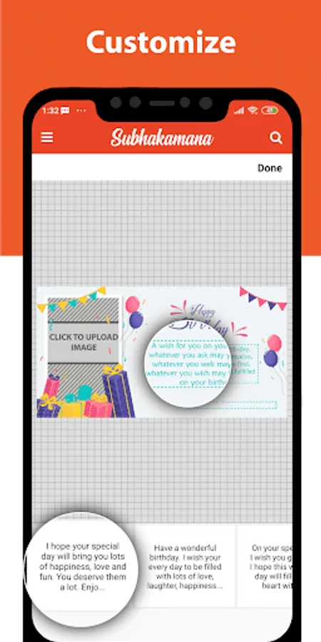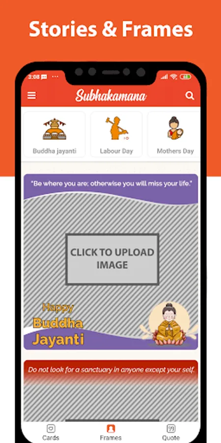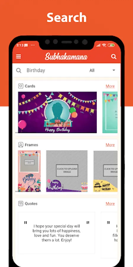 4. Templates: Subhakamana consists of templates in which the user can change their name, message body, pictures and other information using the pre-defined templates
