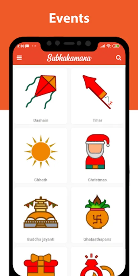 The application consists of frames and templates for different festivals celebrated in Nepal and India like New Year, New Year 2021 wishes, Mother's Day, Father's Day, Dashain, Tihar, Chhath, Fagu Purnima, Holi etc.