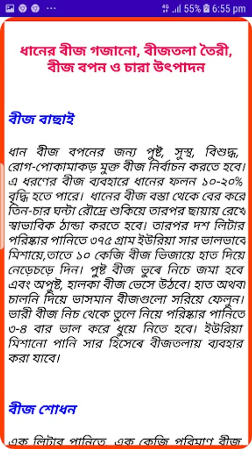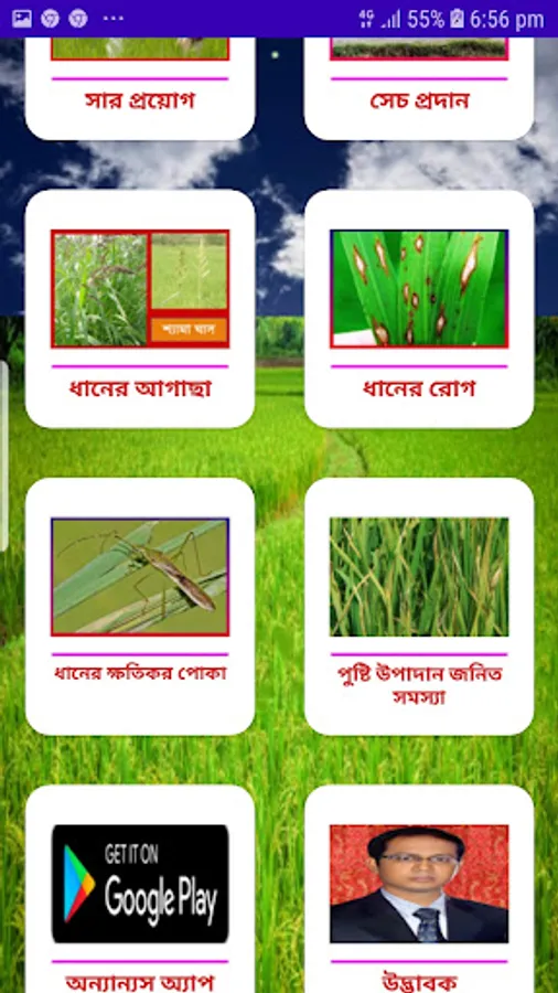 Paddy Expert App is the A-Z solution for paddy cultivation. The app details BRII and BINA invented rice varieties, seedbed preparation, rice cultivation techniques, rice plant vaccination, fertilizer application, irrigation, rice weed control, rice disease control, pest control and rice nutrient problems. Described. After seeing the pictures or descriptions of the harmful insects and diseases of the rice attached in the app, after identifying the correct diseases and insects, you can control the diseases and insects of the rice through integrated pest management. If this does not work, if the disease and insect infestation rate of rice is more than the specified percentage, then the last resort is to apply the right pesticide in the right dose through chemical control management. However, more emphasis has been placed on integrated pest management in the app. In the app, you will be able to know about weed control, Brie and non-invented seasonal rice varieties and the stage and stage of rice growth.