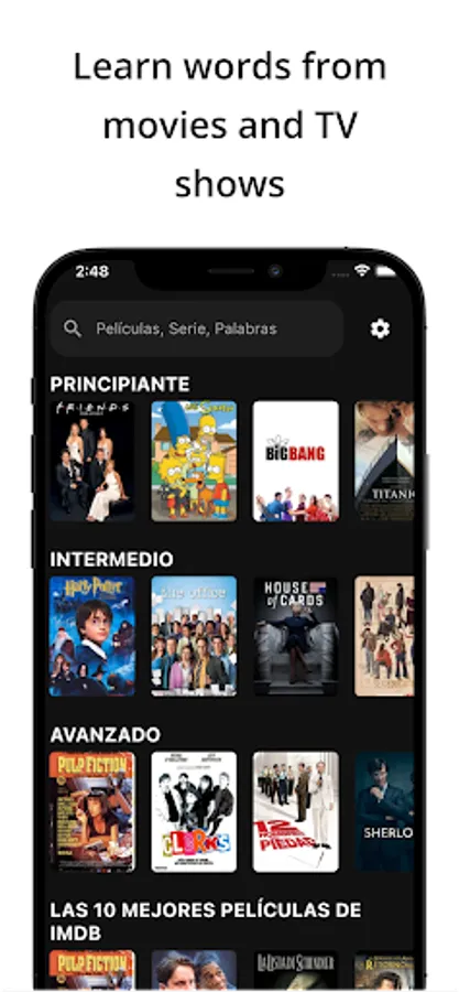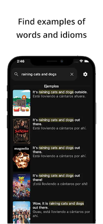 In the application, you can search not only by the name of the movie or series, but also search for mentions of phrases in subtitles. Thanks to this, you can find real examples of the use of words and idioms!