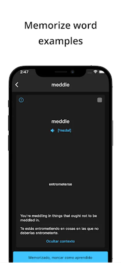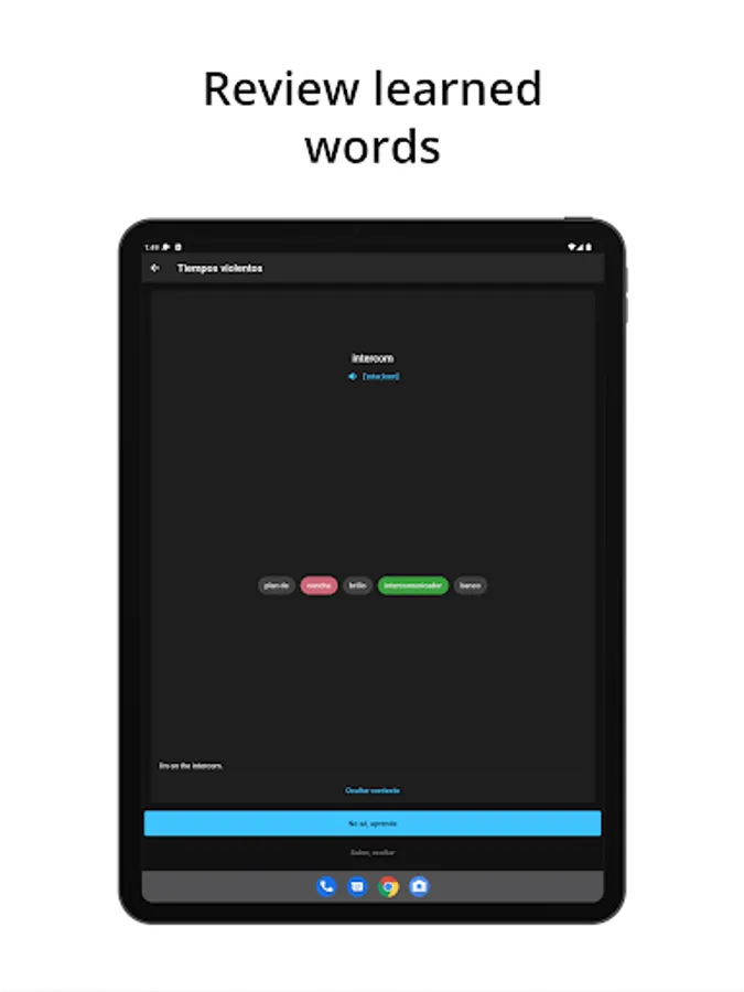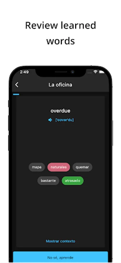 - a section with all learned words and words in the process of learning to repeat words at any time or re-learn a forgotten word.