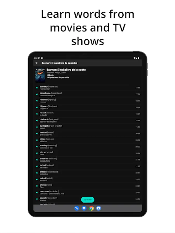Subline is an app for learning English words and idioms from movies and TV shows! It is better to learn all the rare words and phrases from a movie or TV show in advance, so later you can watch your favorite shows without being distracted by searching for the meaning of new words.