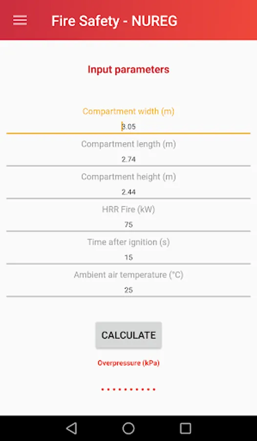 This application allows to calculate simple fire characteristics. The different calculation sheets are based on the NUREG (USA) fire calculation sheets available on https://www.nrc.gov/reading-rm/doc-collections/nuregs/staff/sr1805/s1/