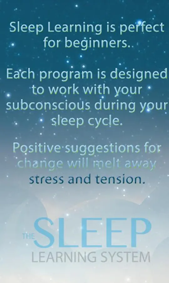 The Sleep Learning System is specially designed to work with your subconscious mind during your sleep cycle. The guided meditation and soothing background music will deeply relax your body and mind for the perfect night’s sleep, while helping you keep and open mind and connecting to your inner metaphysical power.