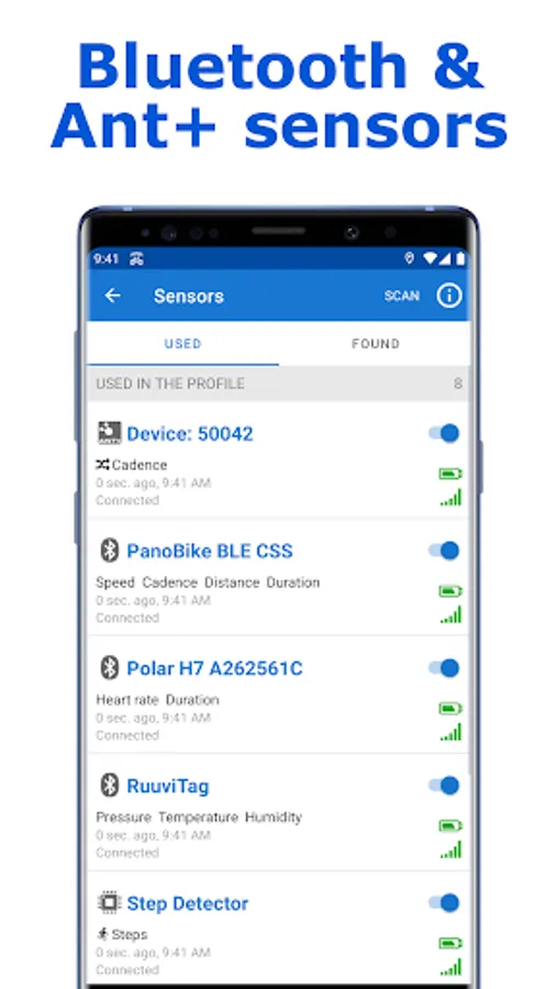 β’ Wireless sensors π β Bluetooth Smart and ANT+ sensors support.