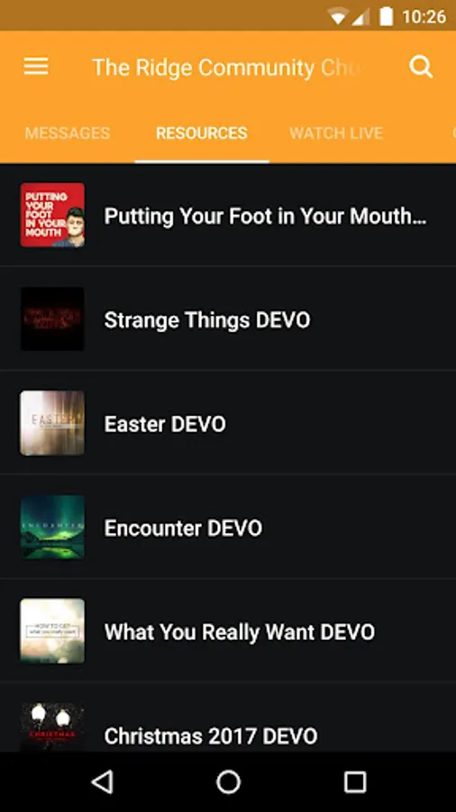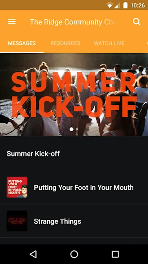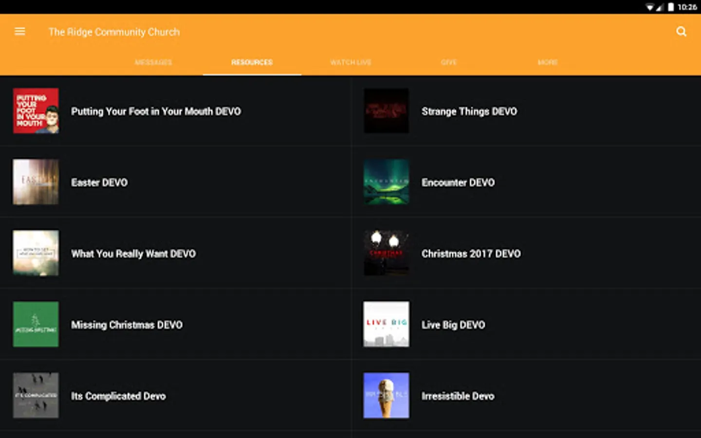 The Ridge Community Church app was developed with the Subsplash App Platform.