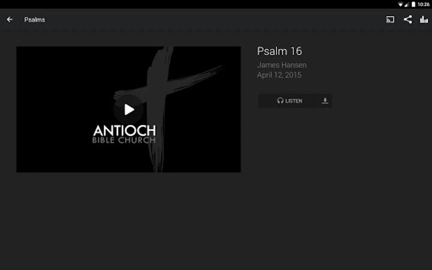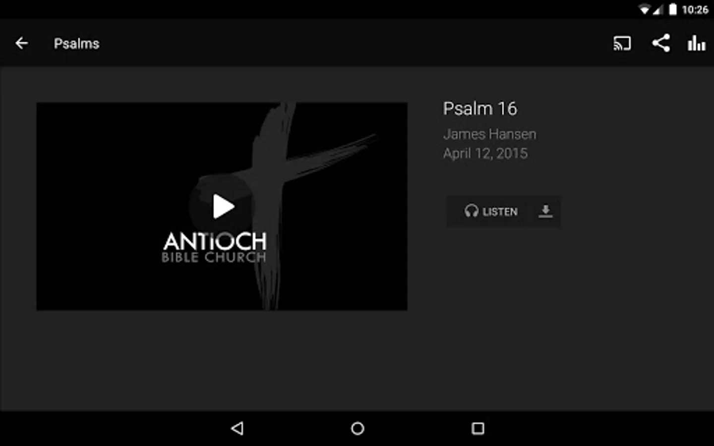 With Antioch's app you'll be able to listen to and watch Antioch's sermons. Stay up to date on the happenings of Antioch. You can share all this with your friends via Twitter, Facebook, or email.