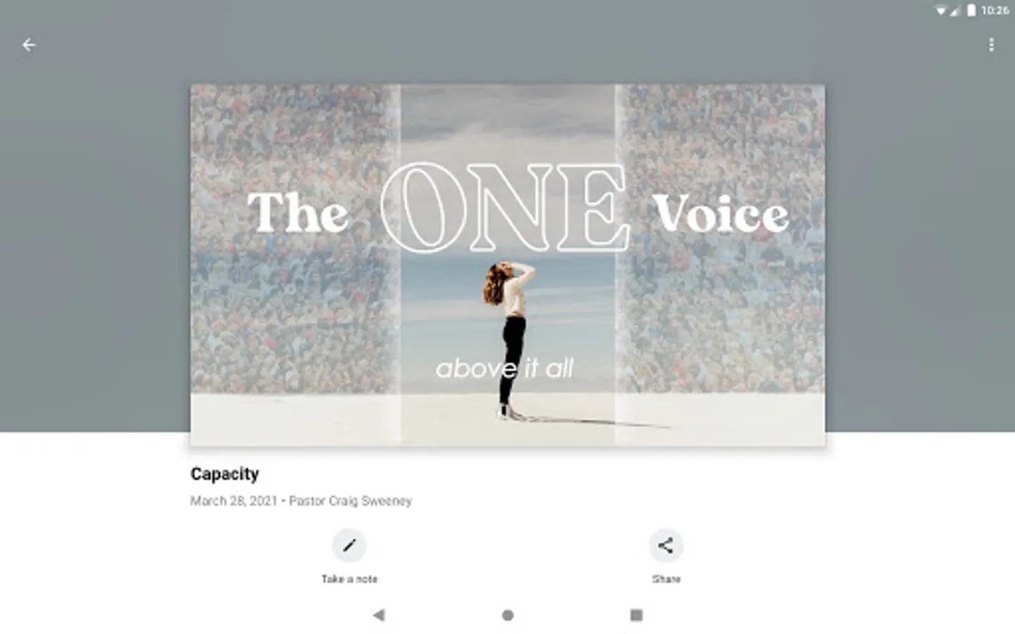 When you download this FREE app, you're one touch away from our weekend messages, delivered straight from the stage. There are also tabs for music, events, announcements, and much more so you can stay connected and know what's going on.