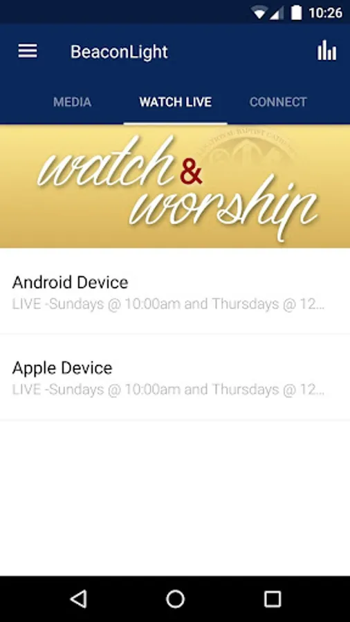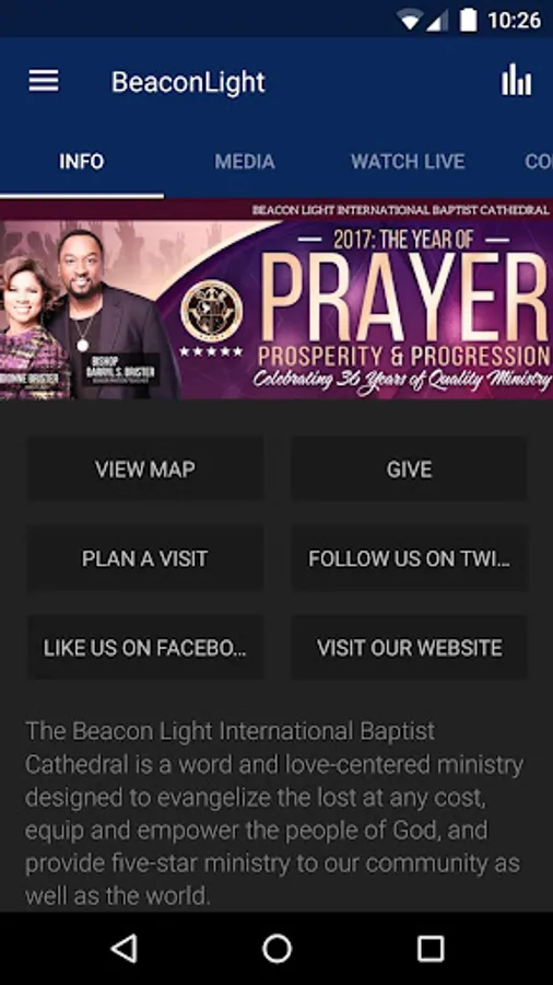 The Beacon Light International Baptist Cathedral app was developed with the Subsplash App Platform.