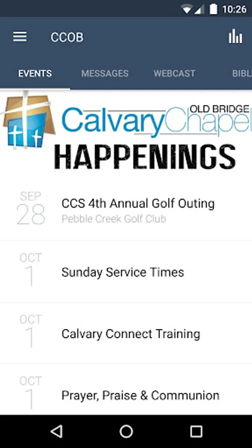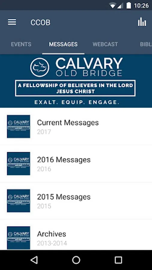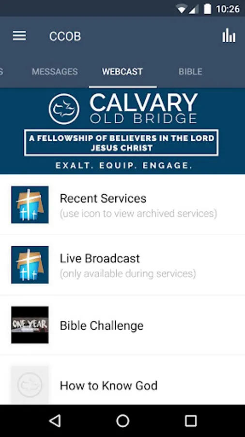 The Calvary Chapel Old Bridge app was developed with the Subsplash App Platform.
