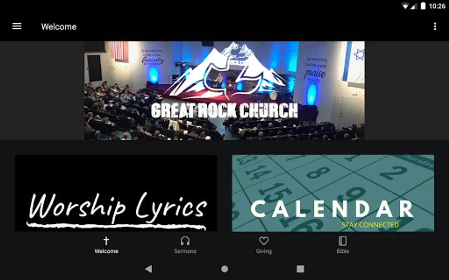 The Great Rock Church app was developed with Subsplash App Platform.
