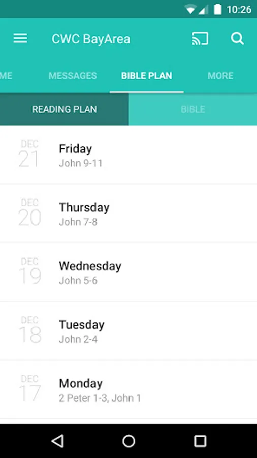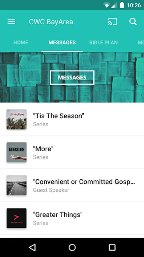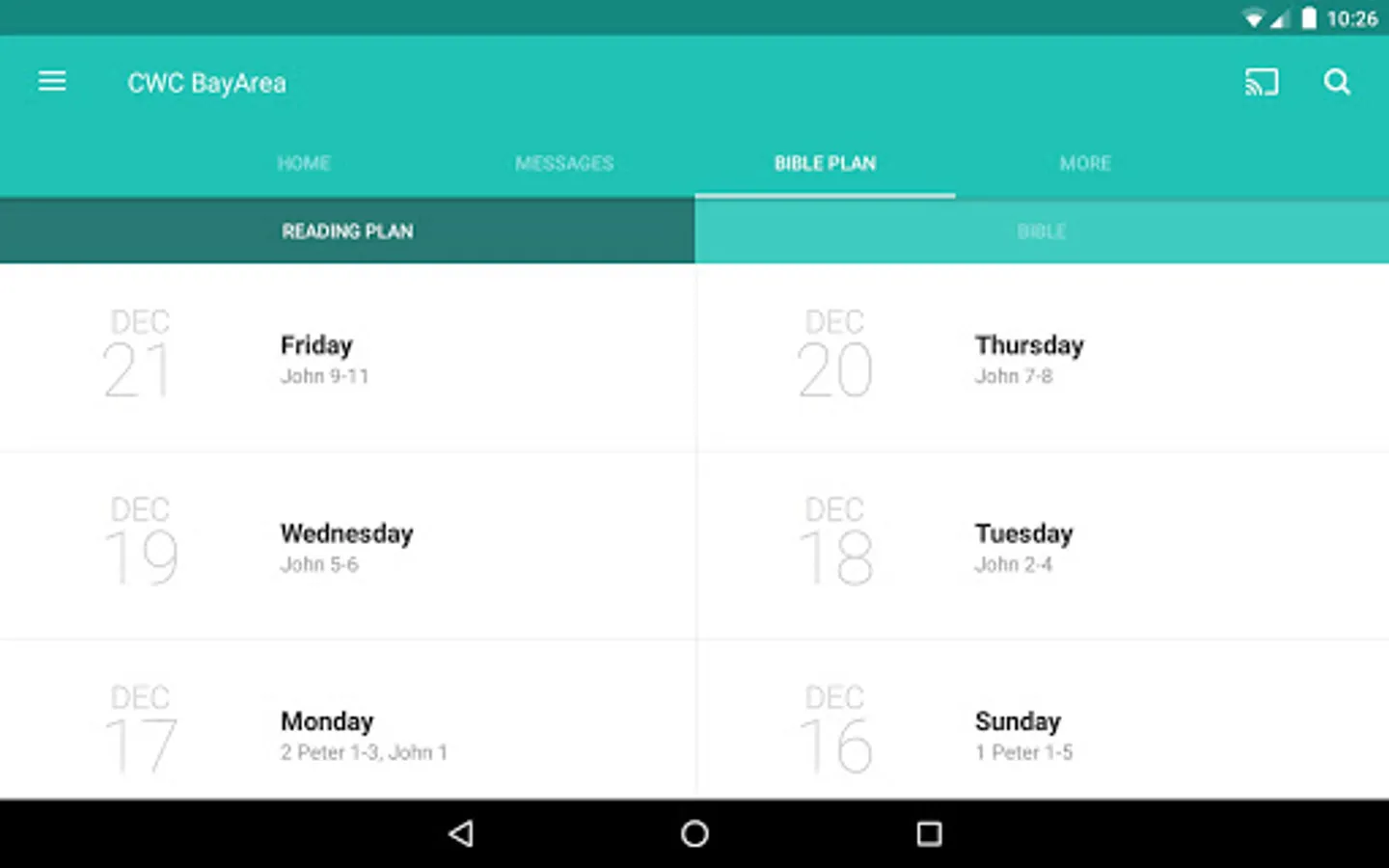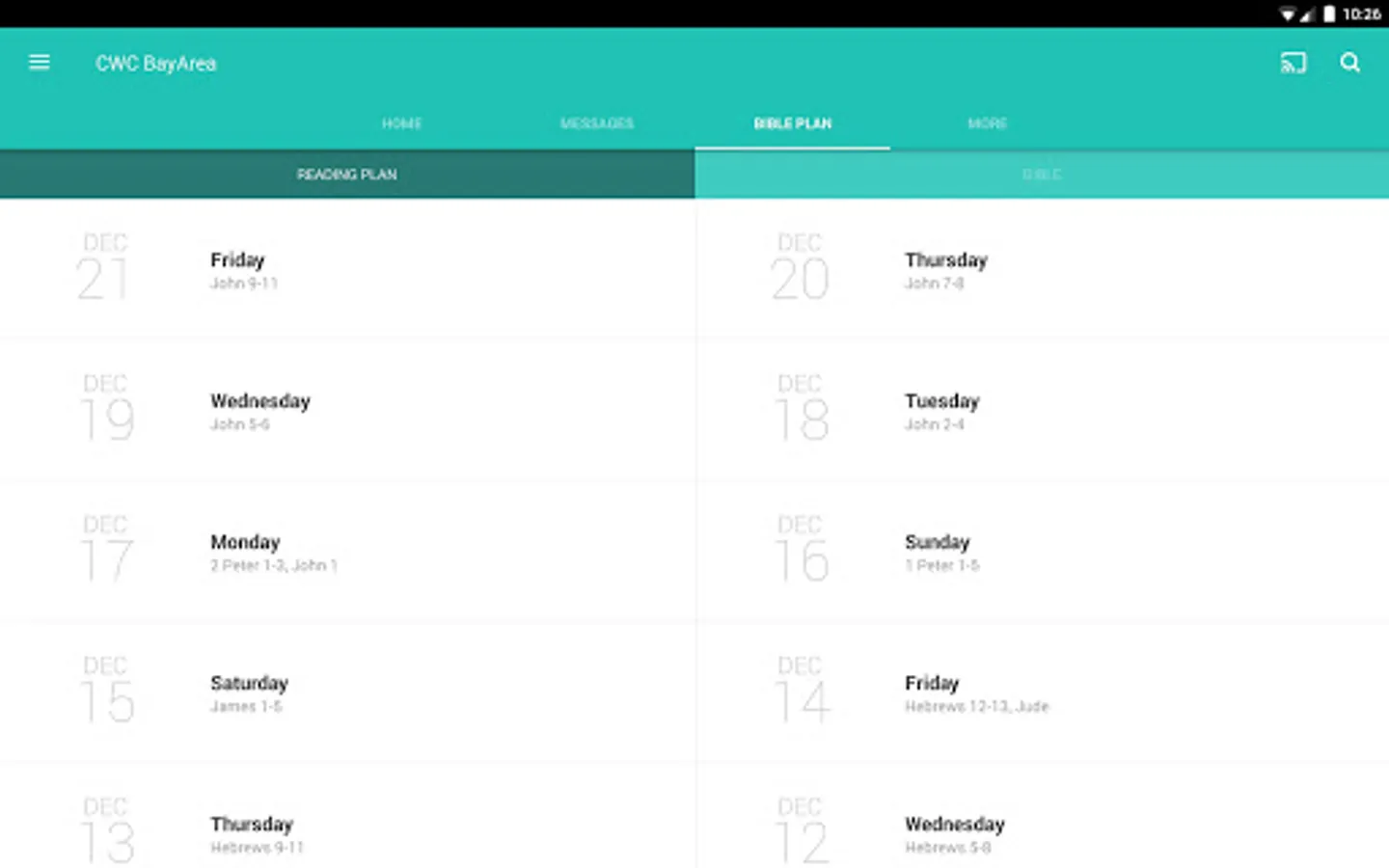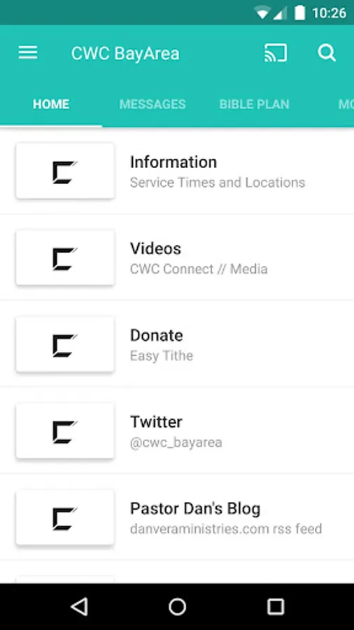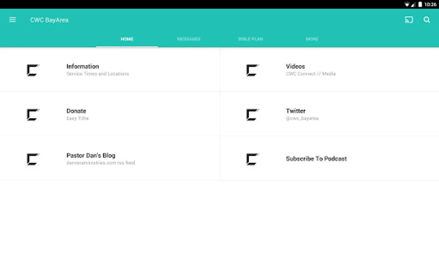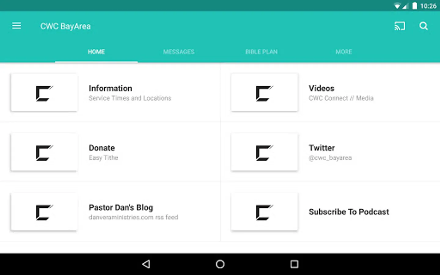 The CWC BayArea app was developed with the Subsplash App Platform.