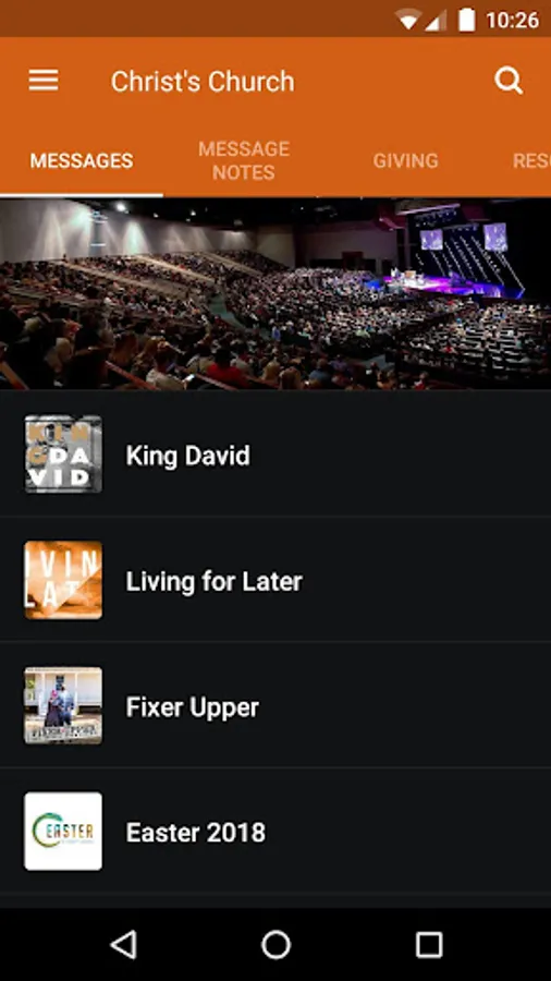 The Christ's Church App features message content from Christ's Church in Jacksonville, Florida.