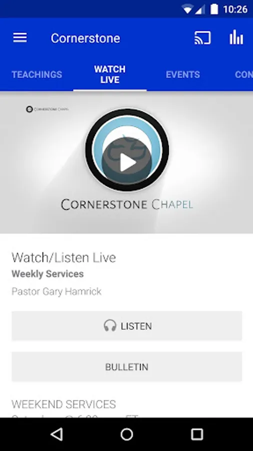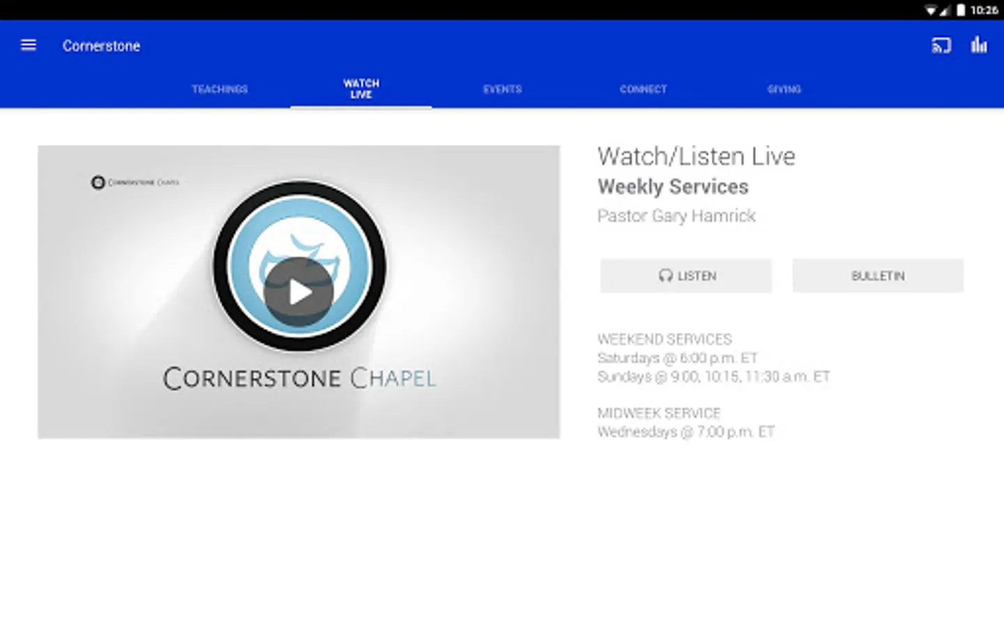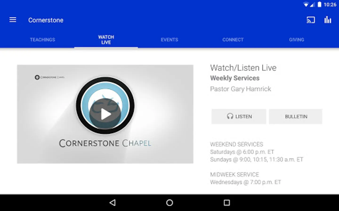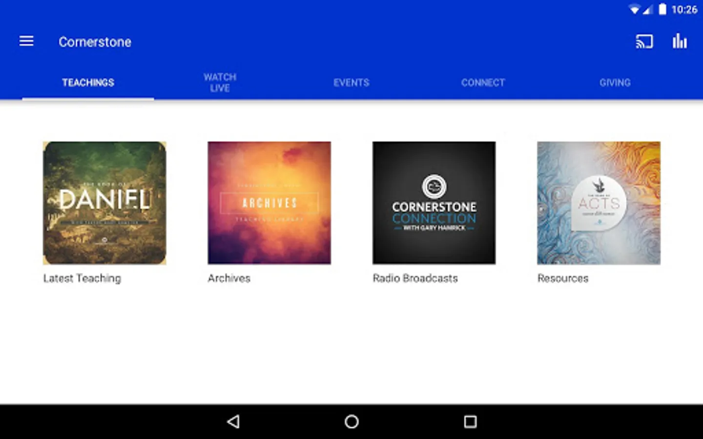 Download the Cornerstone Chapel mobile app to view our weekly services streamed live to your mobile device, access recent teachings, read about upcoming events, and more!