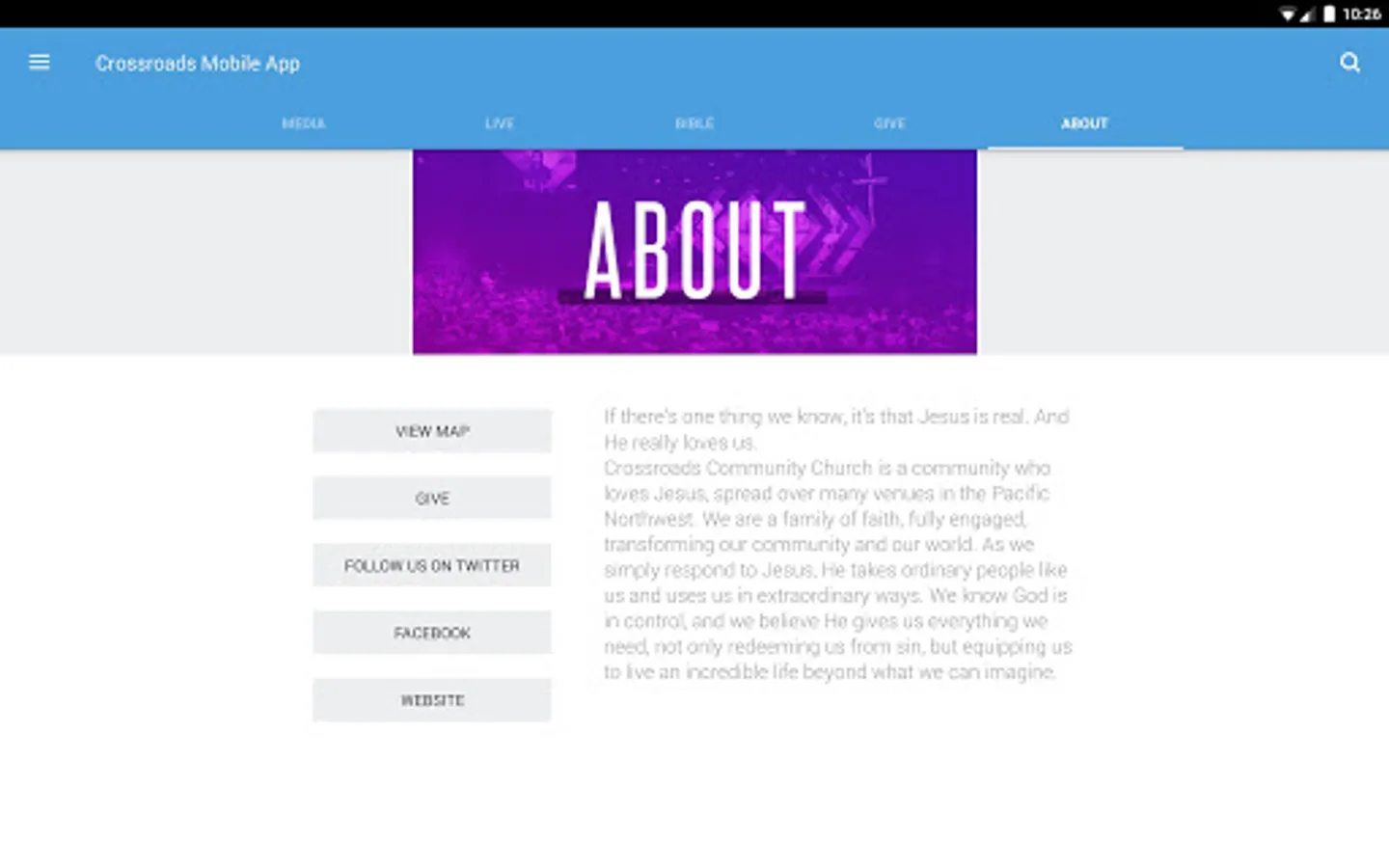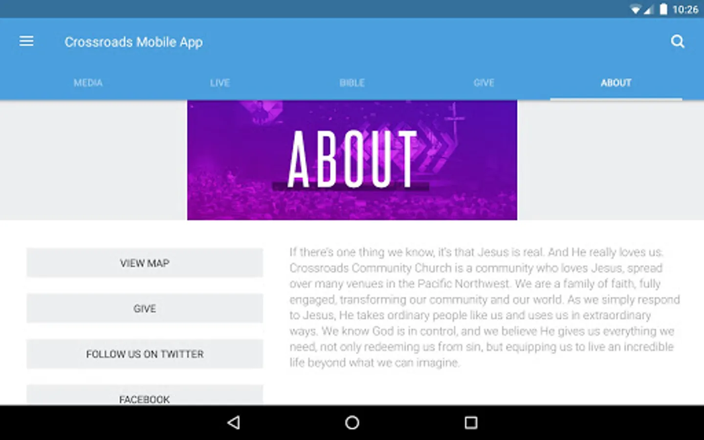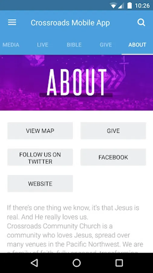 The Crossroads Community Church App was created with The Church App by Subsplash.