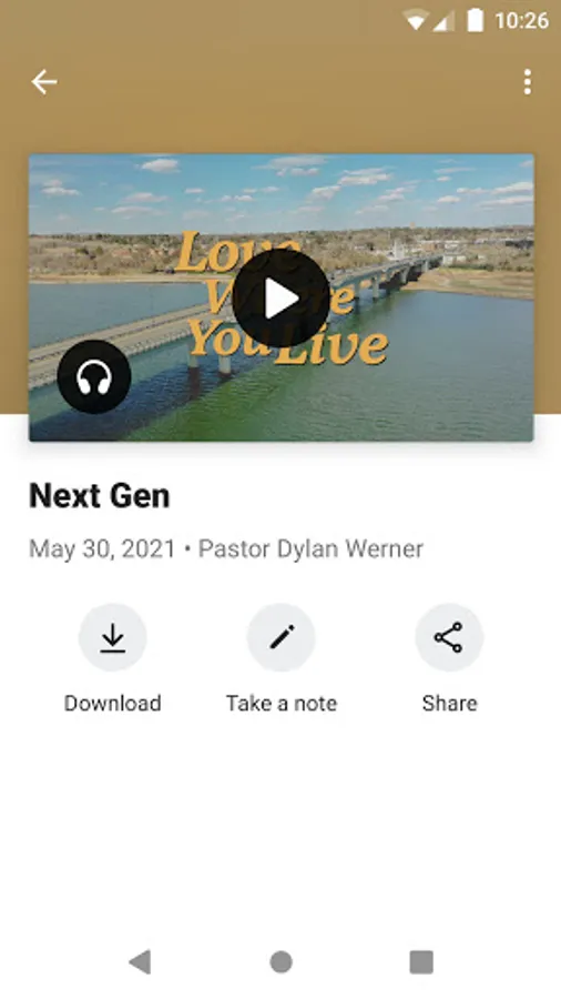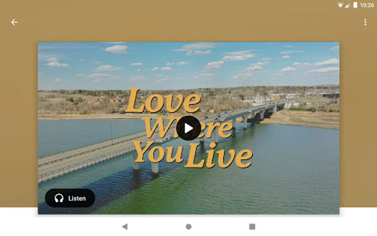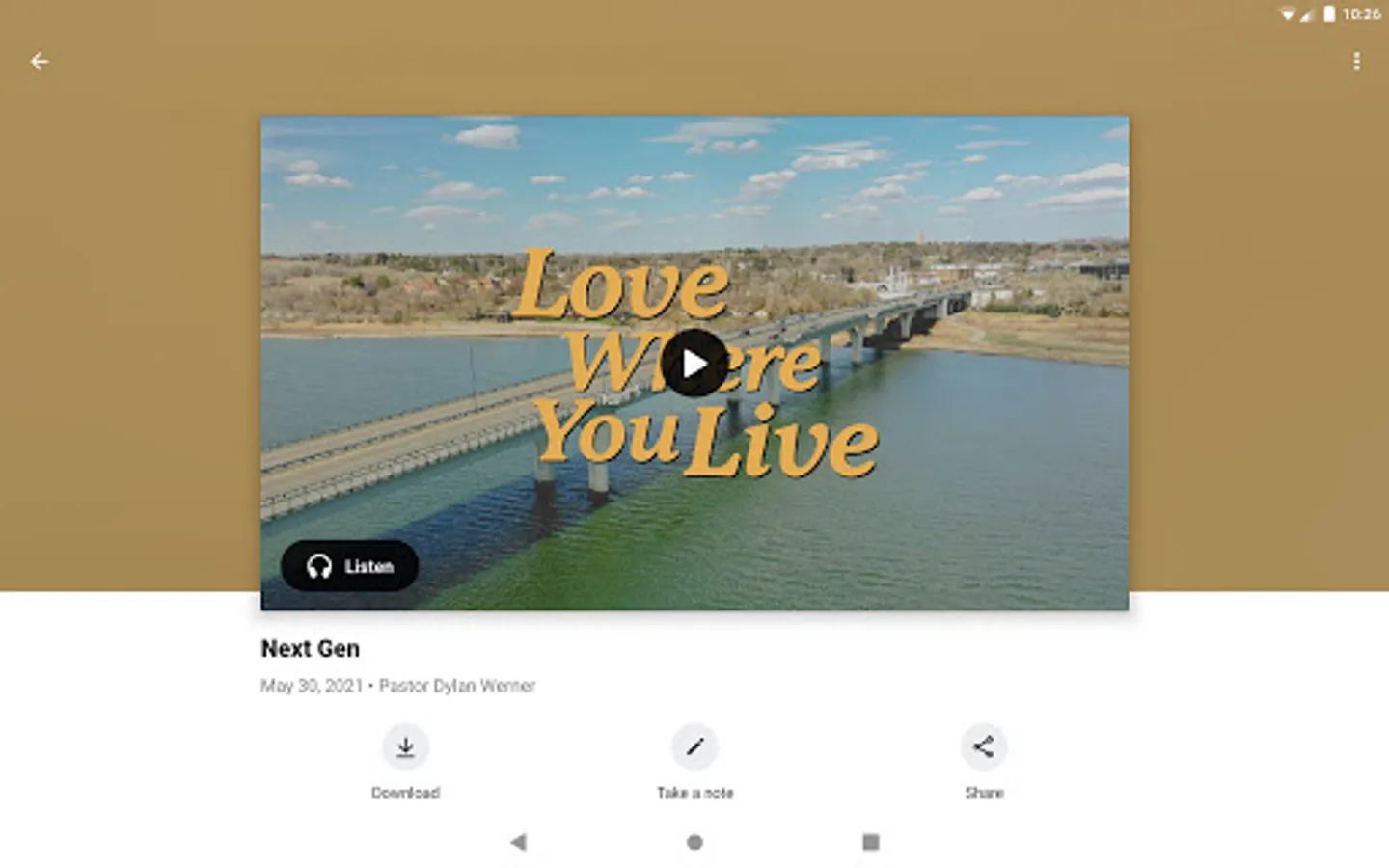 This app will help you stay connected with the day-to-day life of our church. With this app you can: watch or listen to past messages; stay up to date with push notifications; share your favorite messages via Twitter, Facebook, or email; and download messages for offline listening.