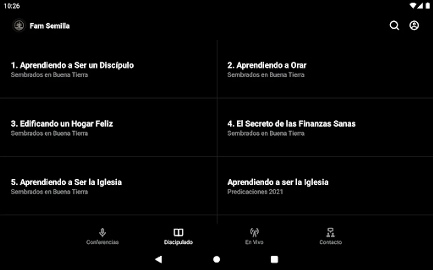 The Familia Semilla de Mostaza app was developed with the Subsplash app platform.