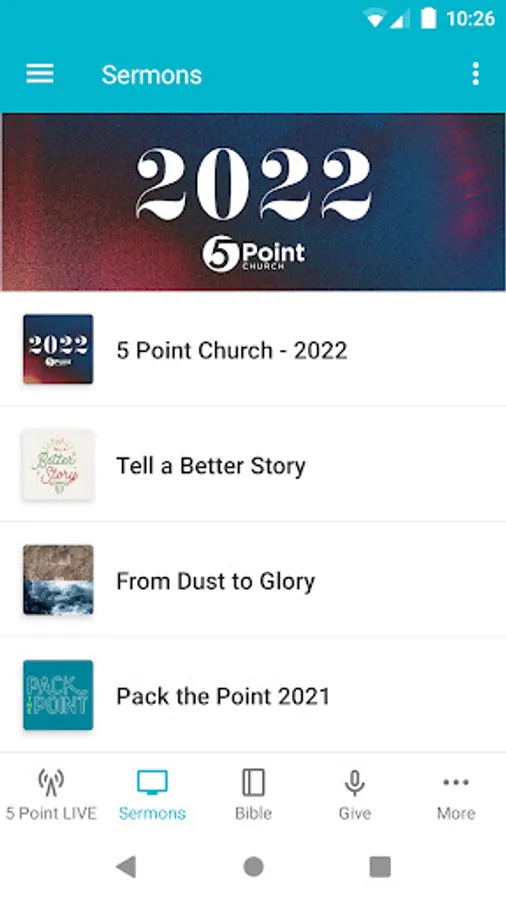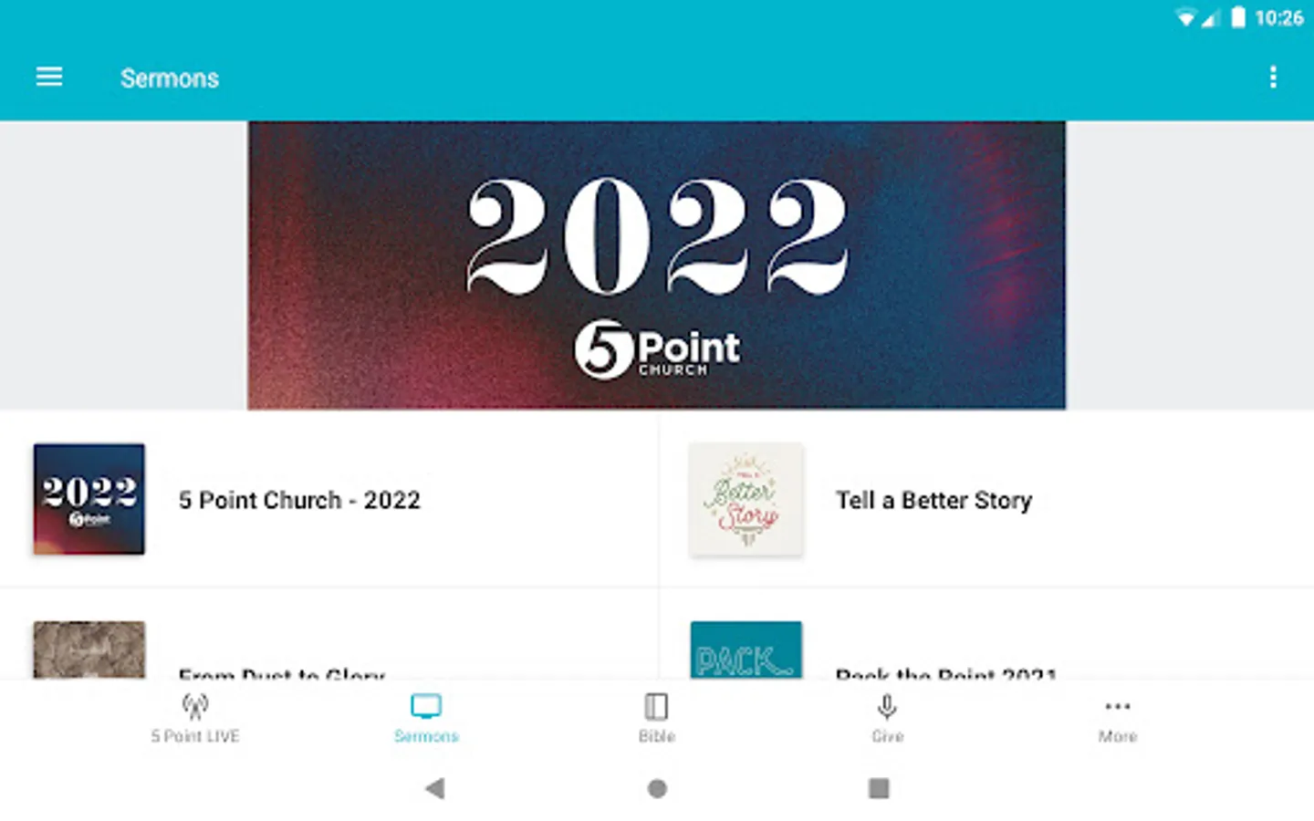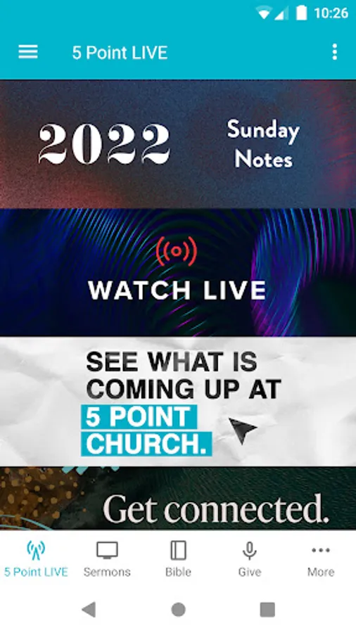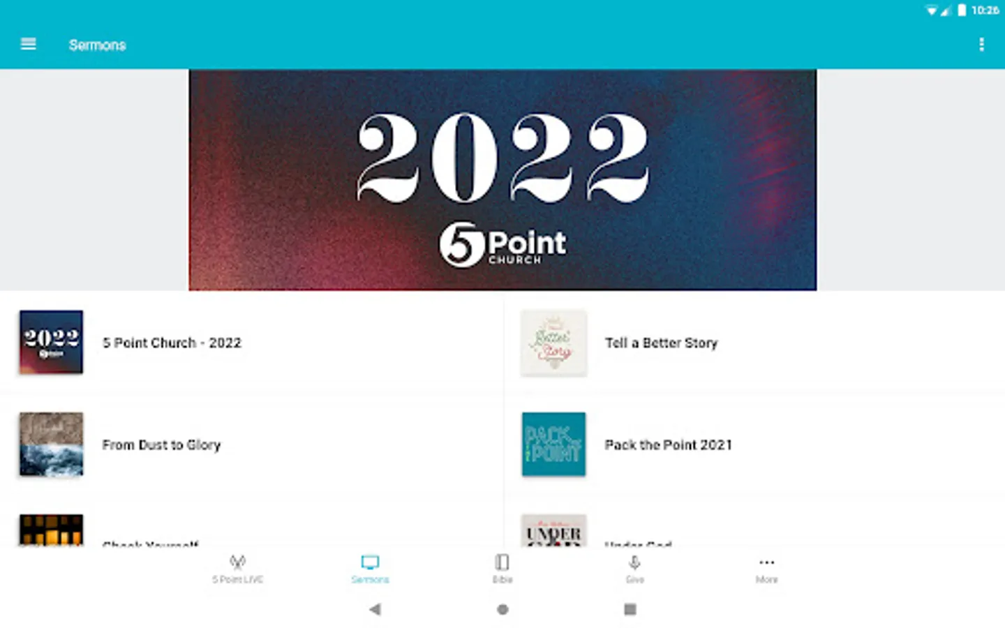 The 5 Point Church app was developed with the Subsplash App Platform.