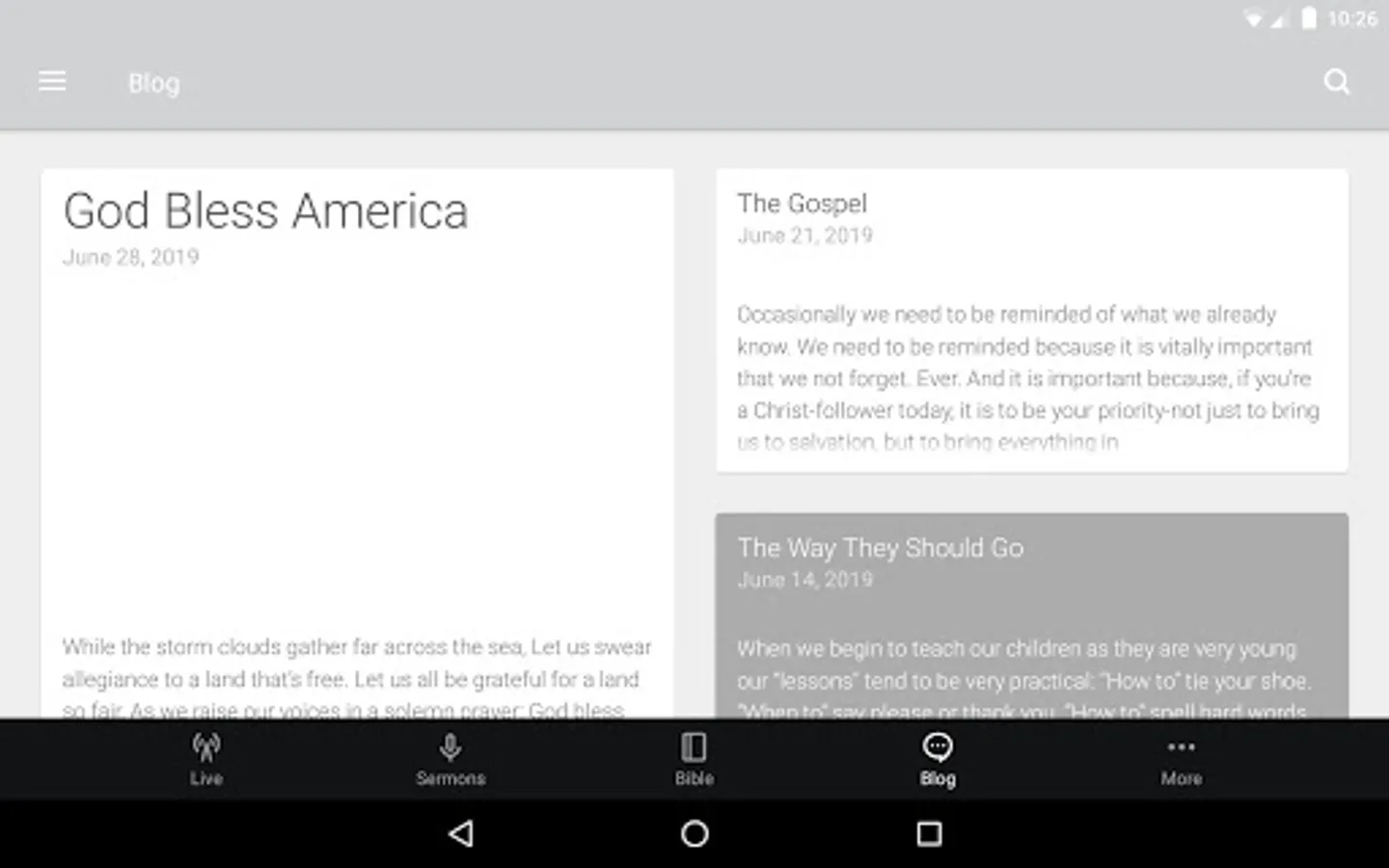 Watch live services and listen to sermons on Bible passages or topics that interest you. After you’ve downloaded and internalized the content, you’ll want to share it with your friends via Twitter, Facebook, or email.