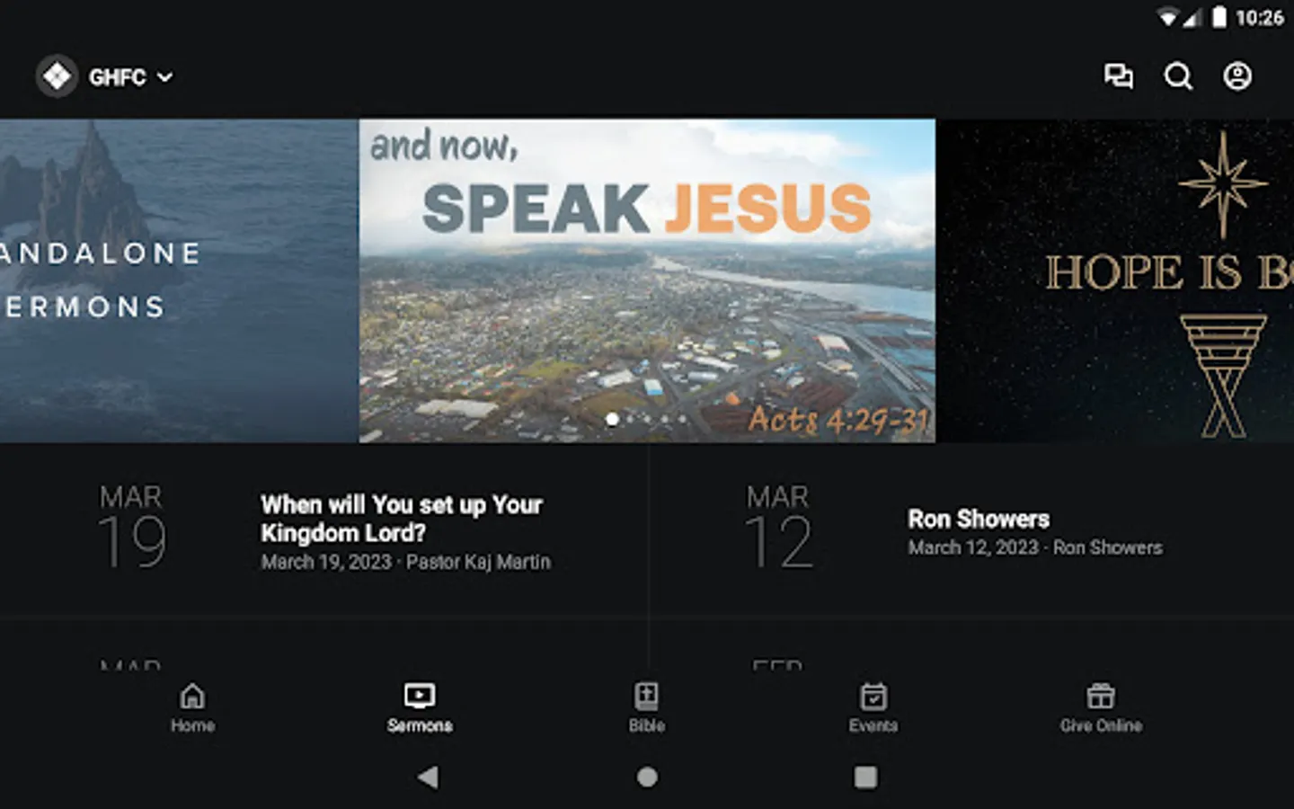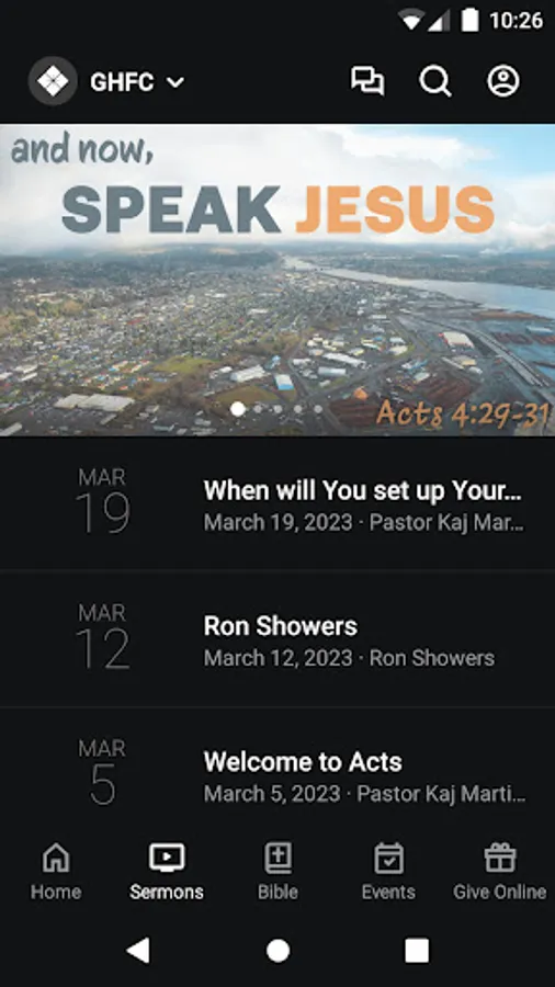 The Grays Harbor Foursquare Church app was developed with the Subsplash App Platform.