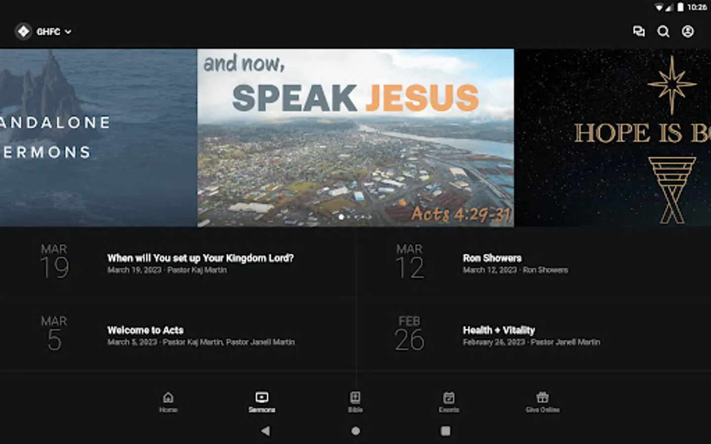 Our church family application connects you to what’s going on weekly at Grays Harbor Foursquare Church. Catch up on all of Pastor Kaj & Janell Martin’s recent messages by watching the video or listening to the audio, and easily share links via Twitter or Email. You also have access to our live streaming so you can watch the entire service LIVE on the go.