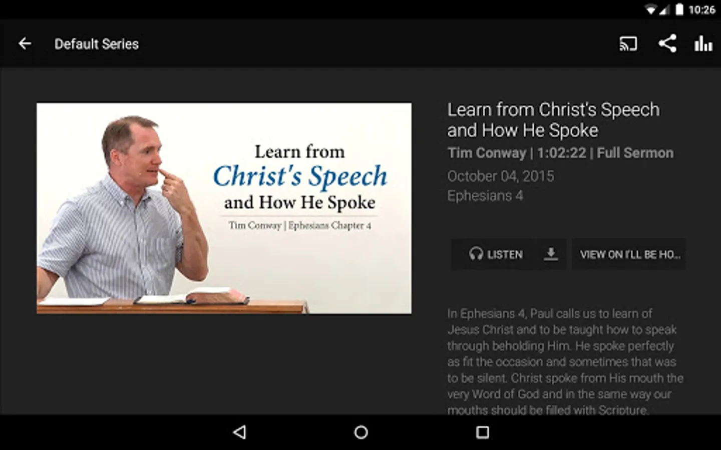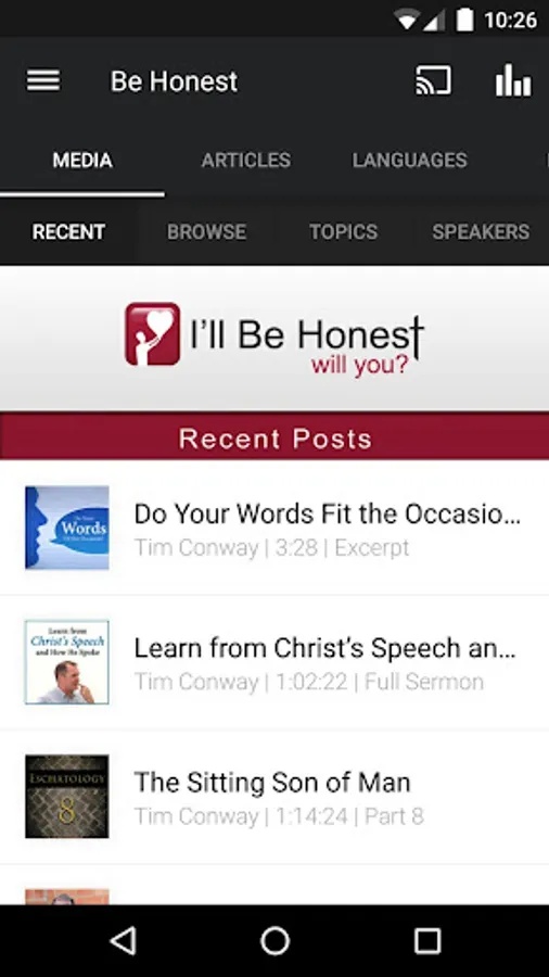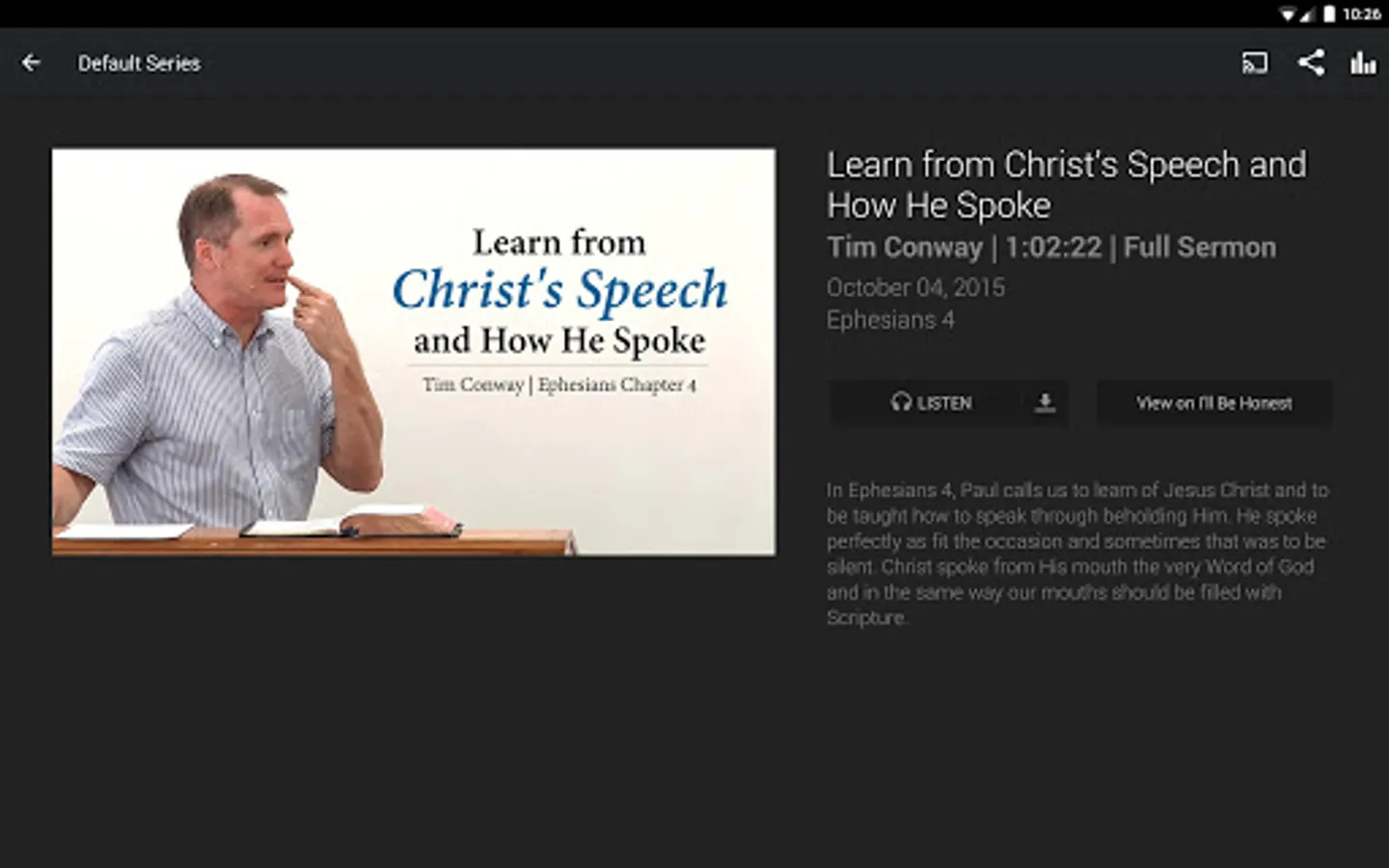 This app will allow you to easily listen to or download the newest content that is posted on I'll Be Honest. The messages are organized by series, topic, and speaker.