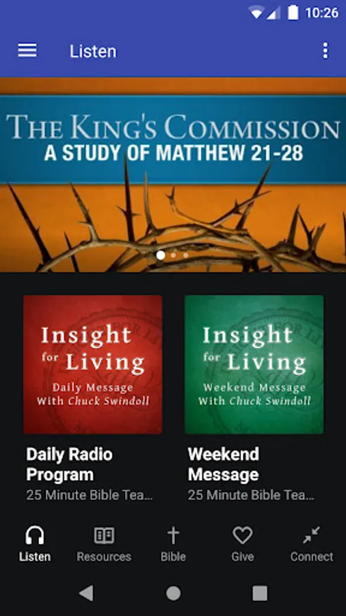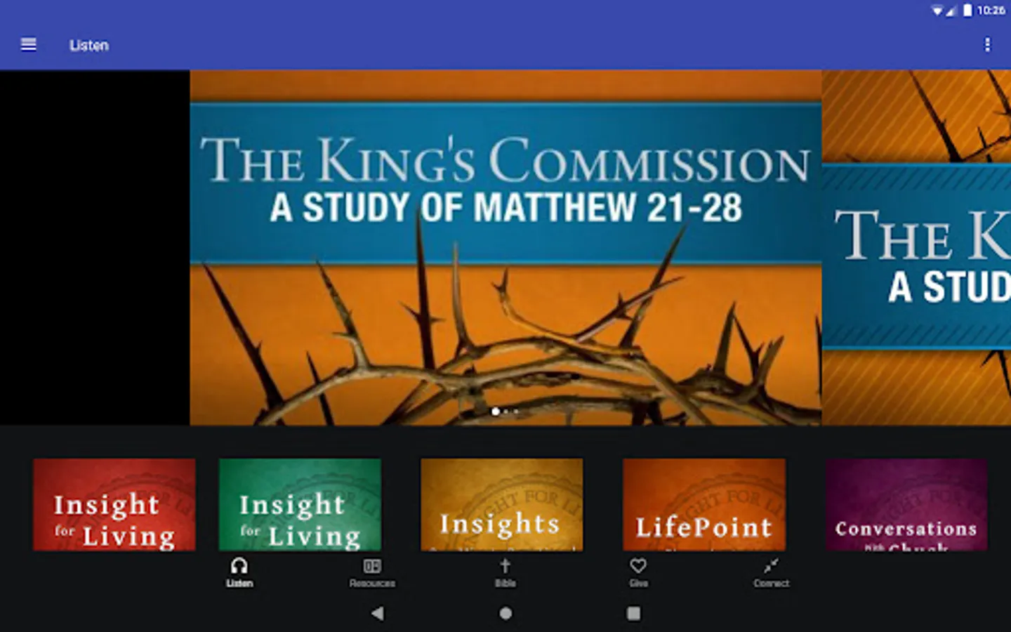 With the Insight for Living Australia app, you can easily listen to Chuck Swindoll’s current broadcast message as well as other offerings from Insight for Living Australia. You can also watch short, engaging videos that share biblical wisdom.