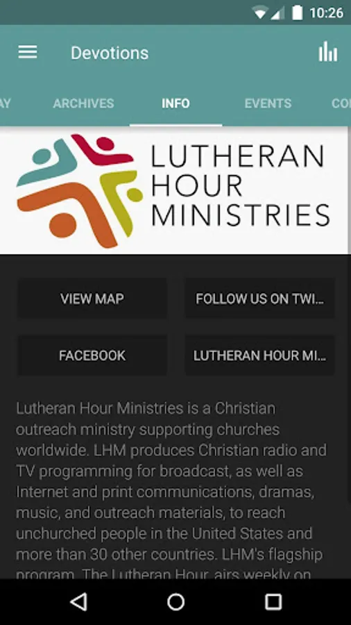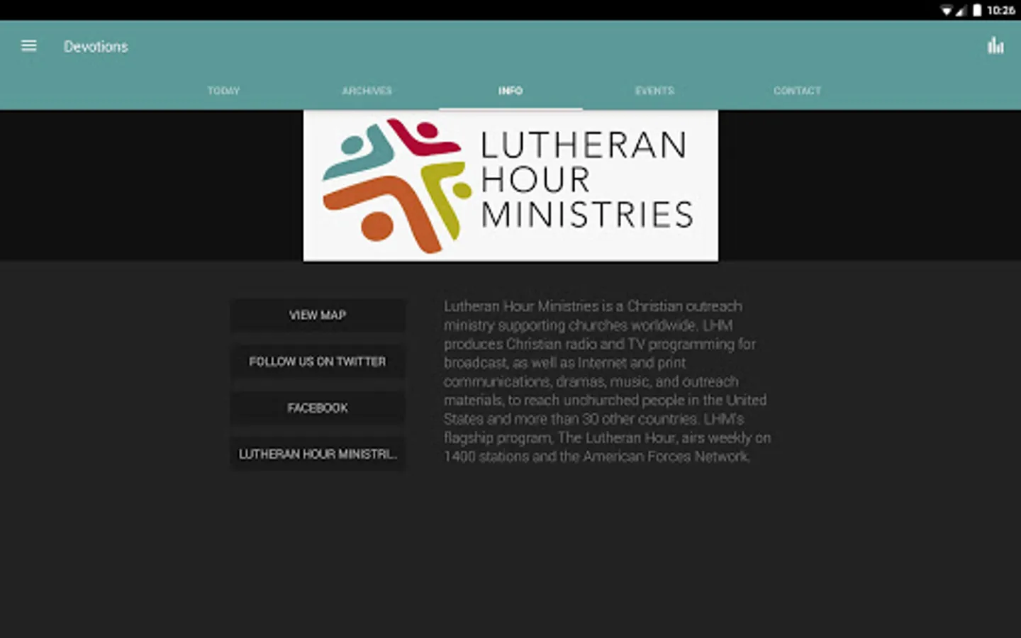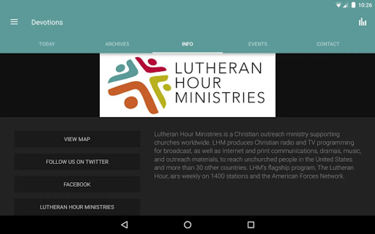 The Lutheran Hour Ministries Daily Devotions app was developed with the Subsplash App Platform.
