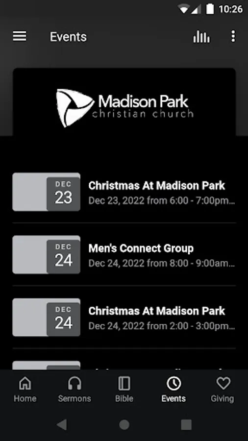 With the Madison Park App you can easily listen to and download past messages, see upcoming events and read our blog. You'll also find everything you need to begin a bible study with our daily study blog and a built in bible. This is the best way to stay connected to everything going on at Madison Park Cristian Church.