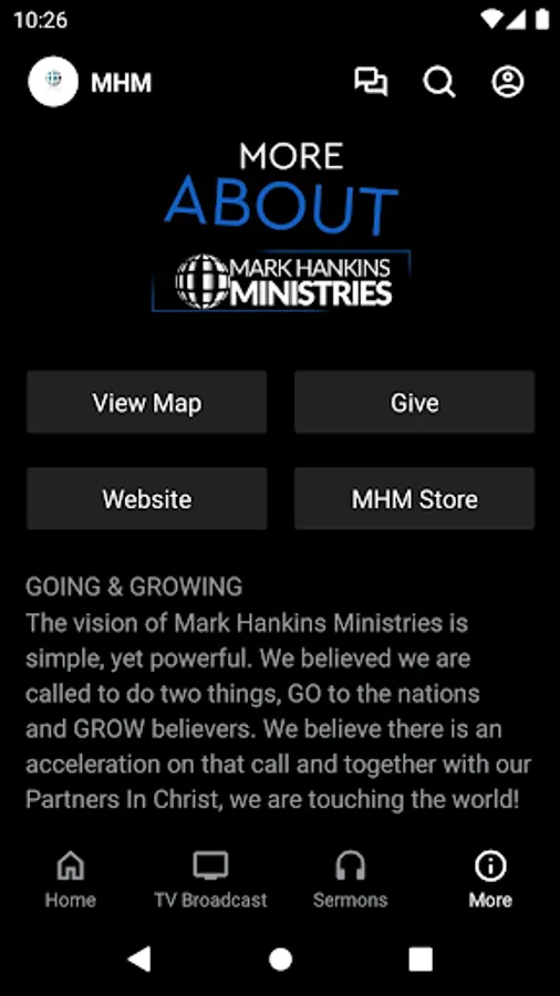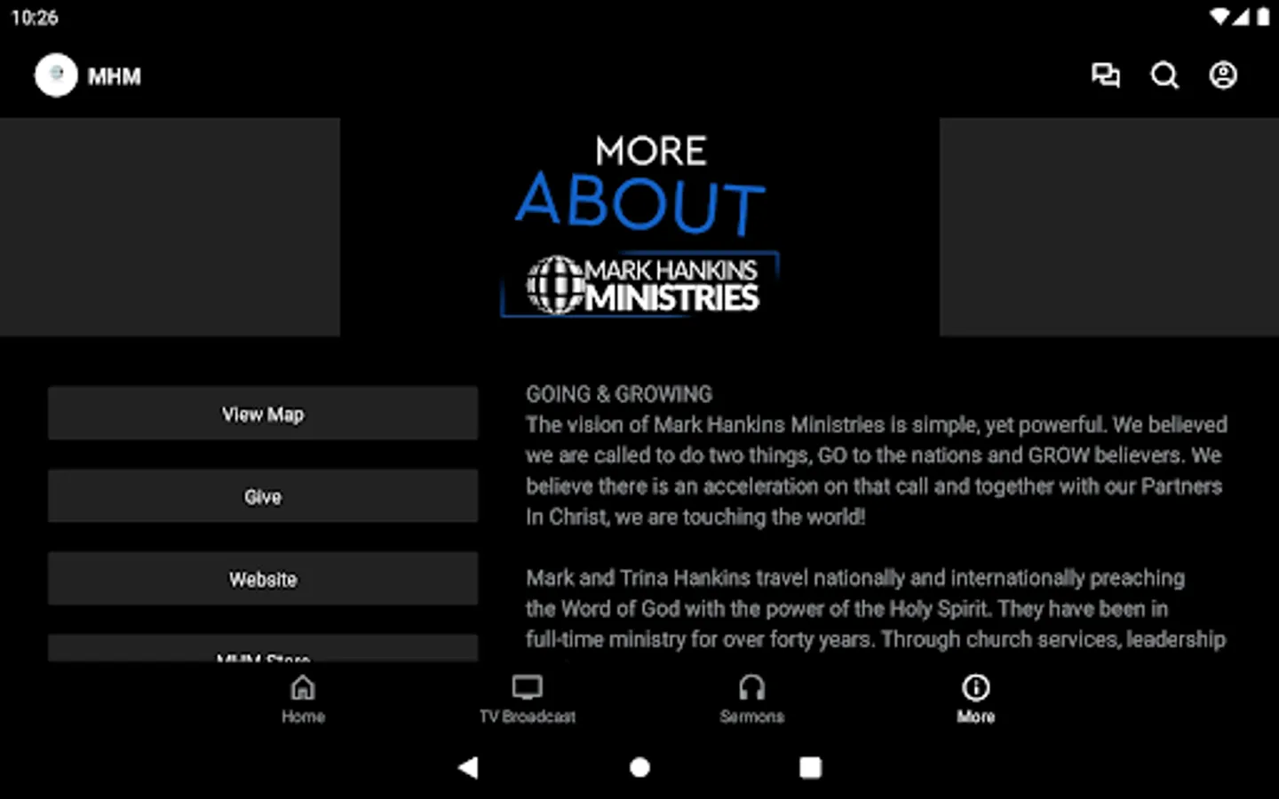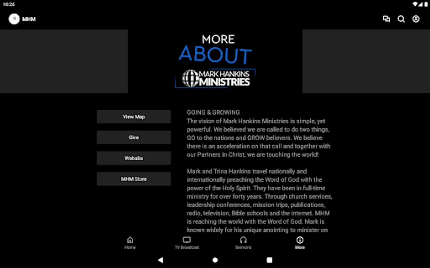 The Mark Hankins Ministries app was developed with the Subsplash App Platform.