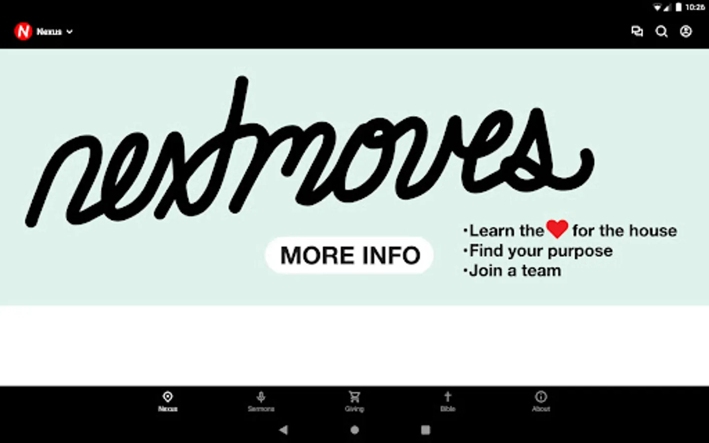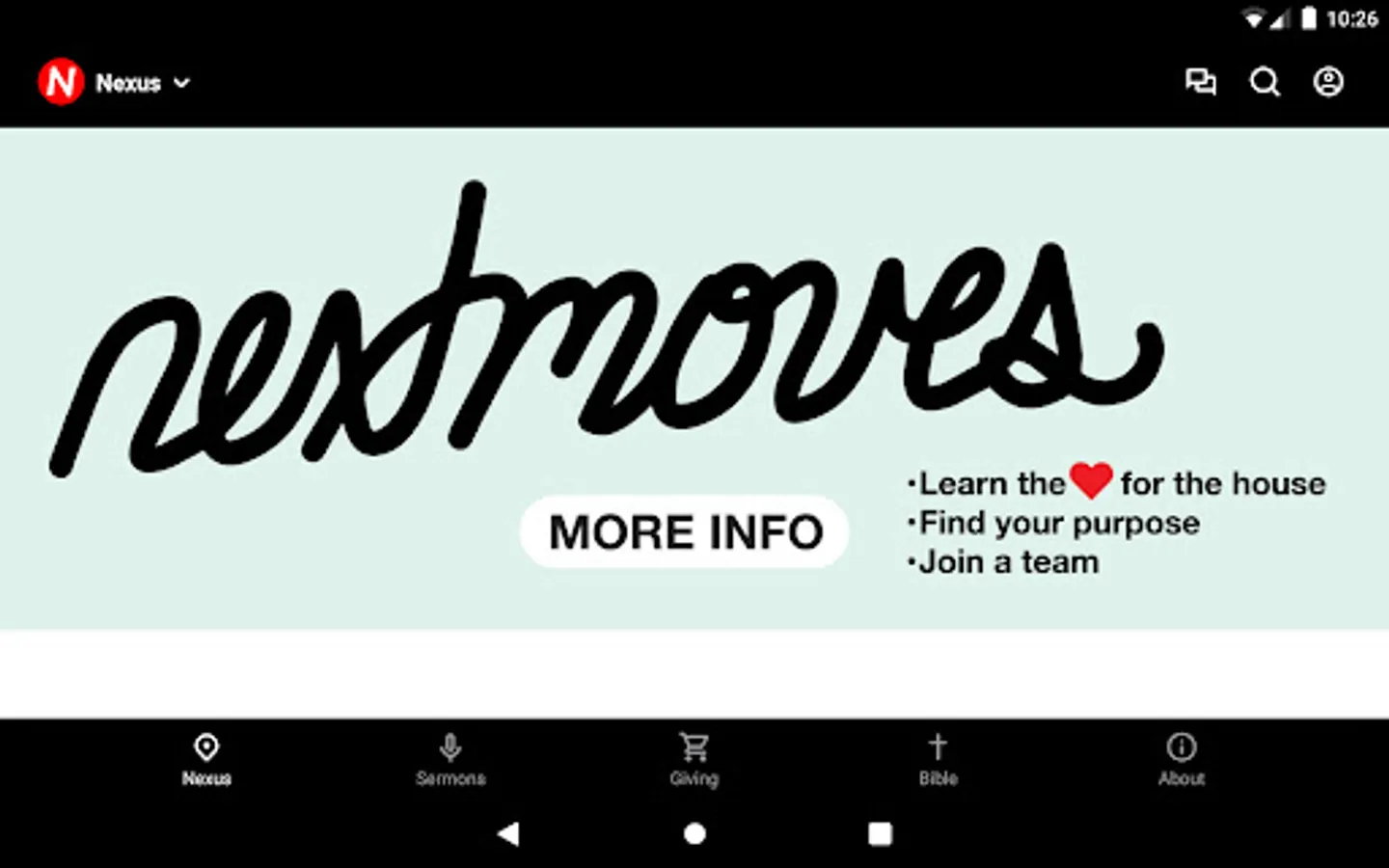 With the Nexus Church app you'll always be only a tap away from all things Nexus Church. You can listen to sermons, watch videos, give, get connected and much more. You can browse the entire collection of Nexus sermons and easily listen or watch whatever you'd like, then share it with friends on Facebook, Twitter, or by email.