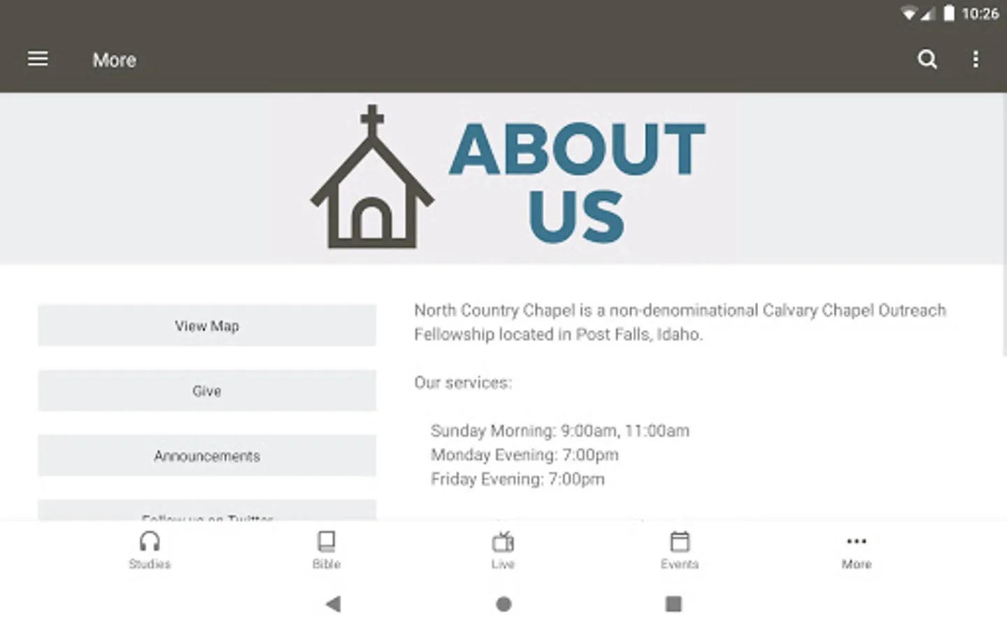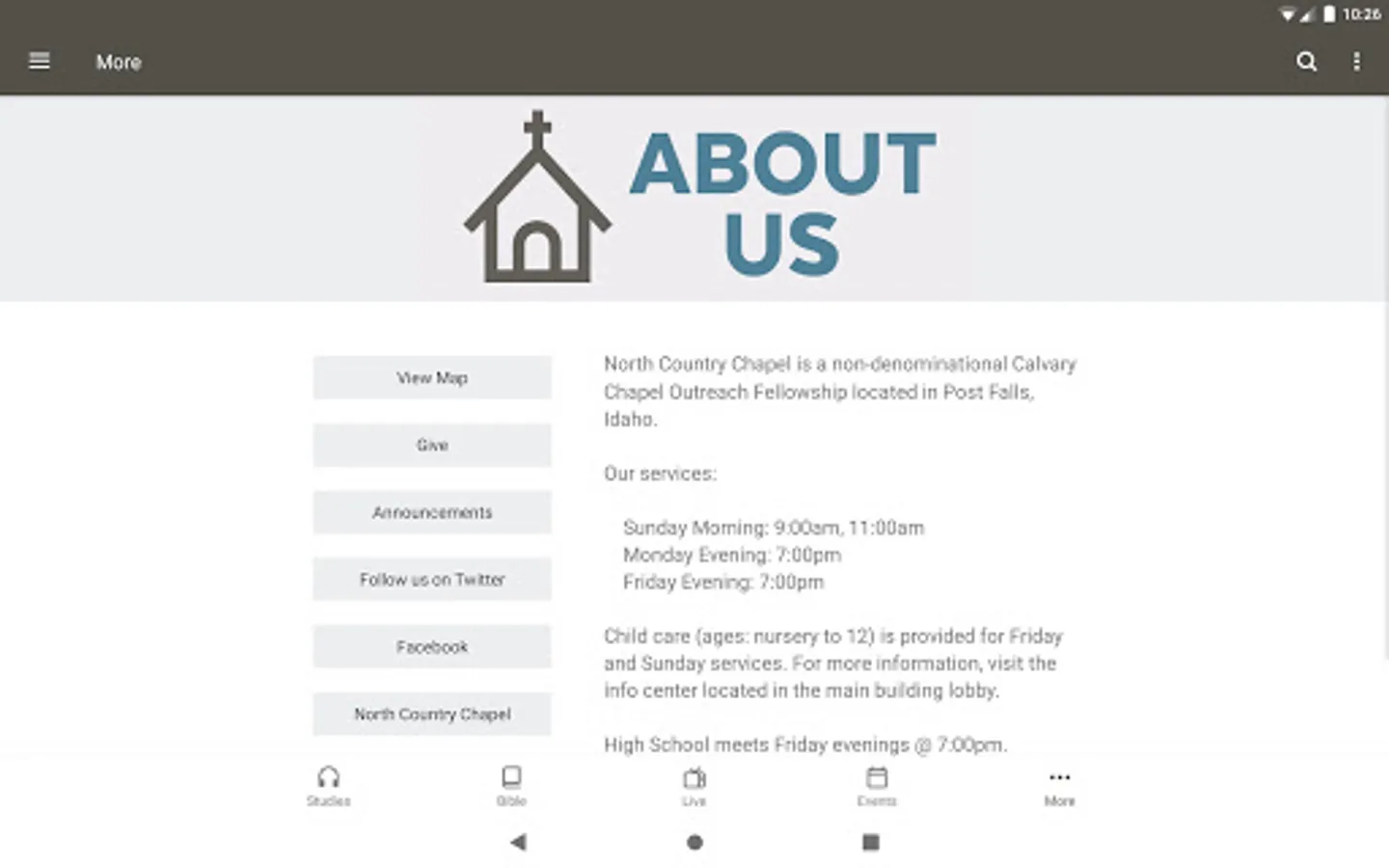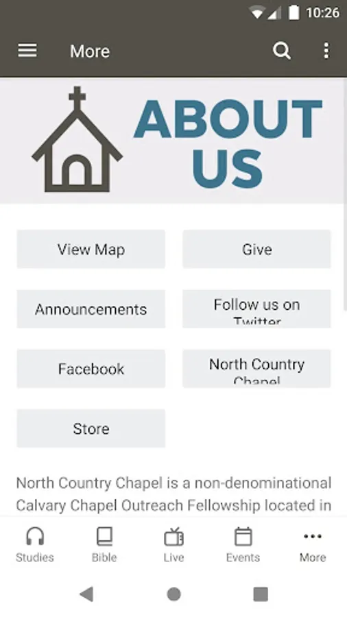 The North Country Chapel app was developed with the Subsplash App Platform.