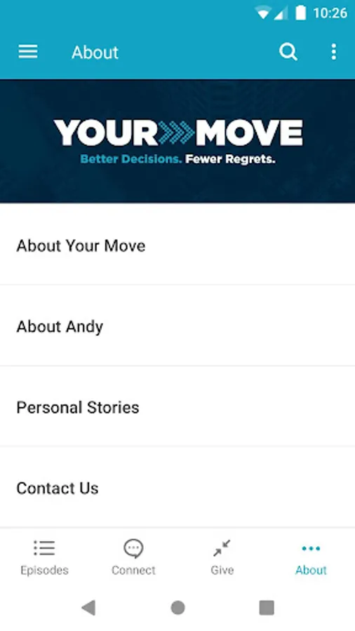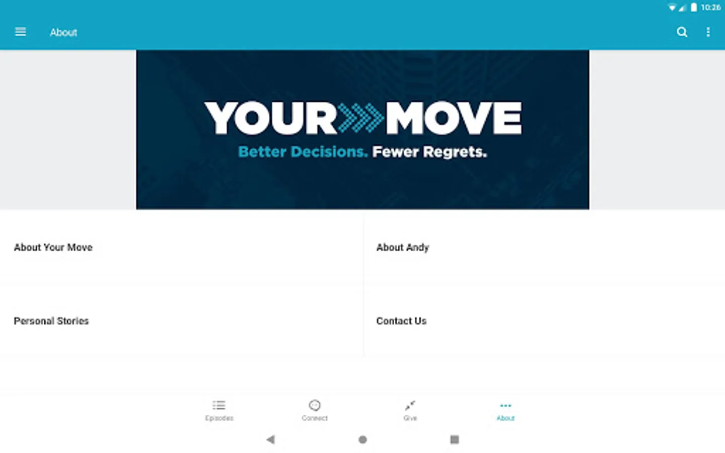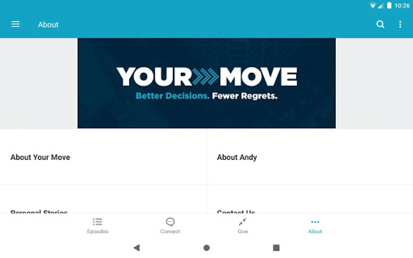 The Your Move app gives you on-demand access to the full video collection of Your Move episodes. Extra features include easy share functionality, audio listening, conversation and application tools, and opportunities to further connect with Your Move with Andy Stanley.