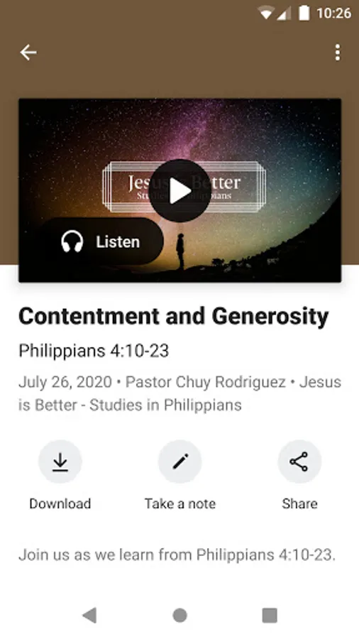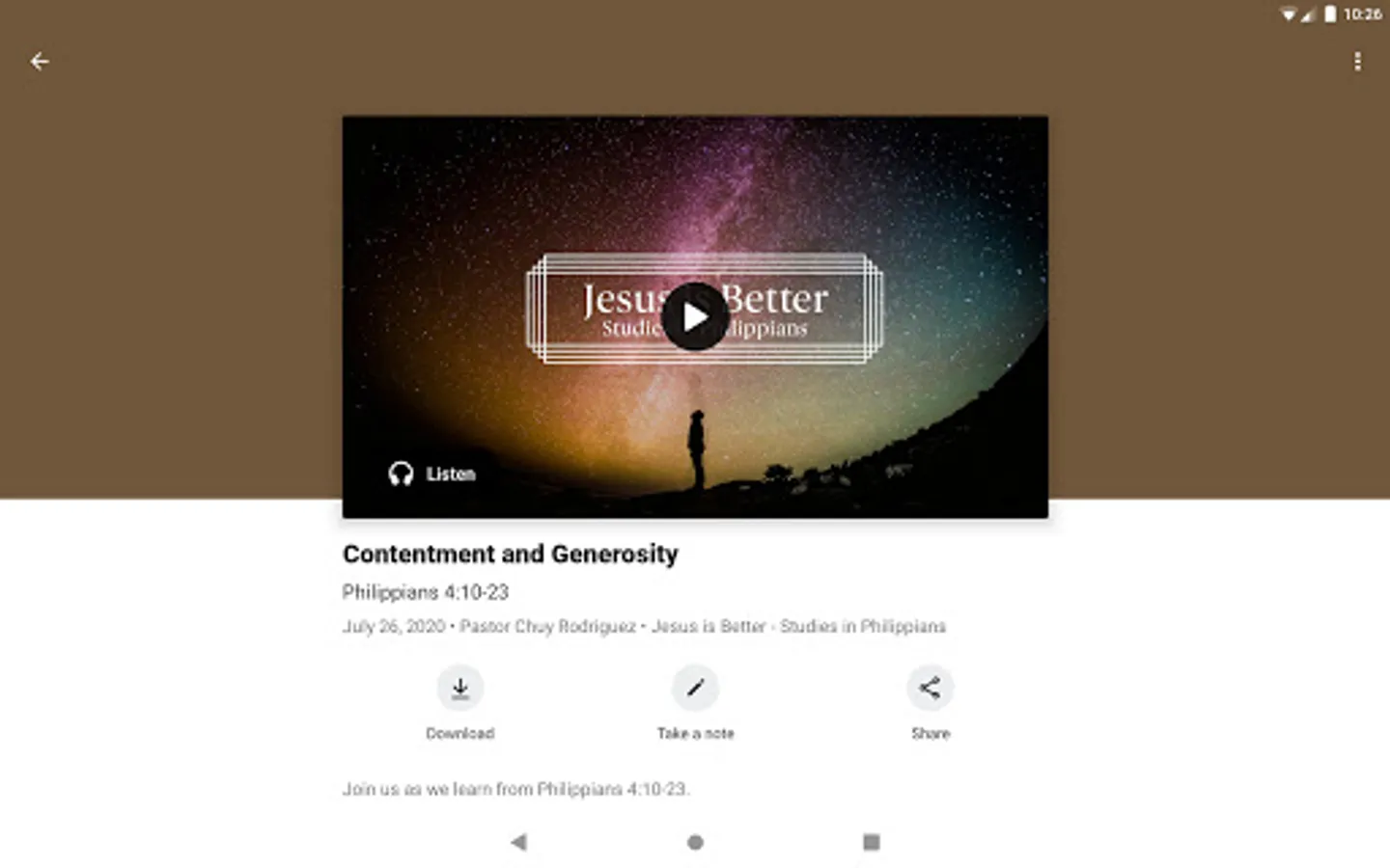 The Redemption Hill app gives you easy access to sermons, videos, events, and more. You can catch the sermon from this past Sunday, and watch or listen to past series'. You can also share any content with your friends through Twitter, Facebook, or email.