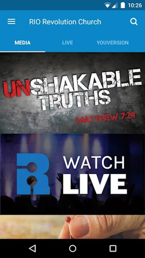The RIO Revolution Church App was created with the Subsplash App Platform.