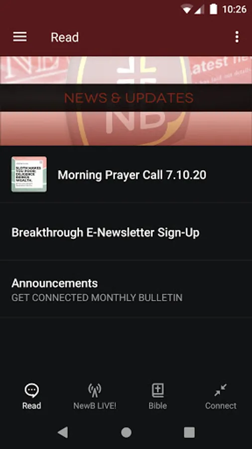 The New Beginnings Fellowship Church App was created with the Subsplash App Platform.