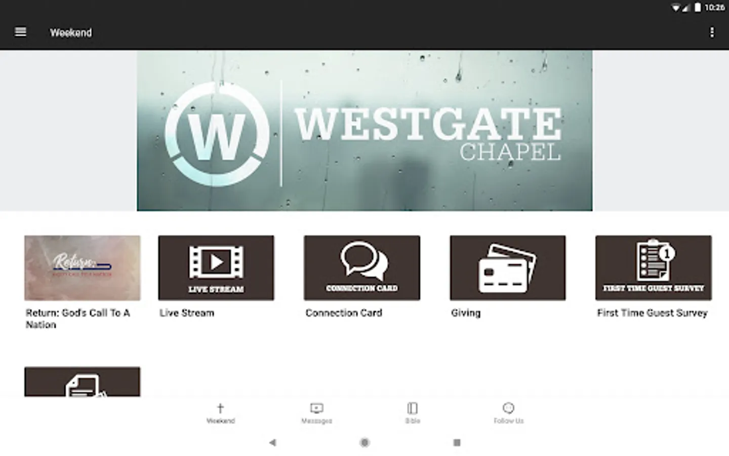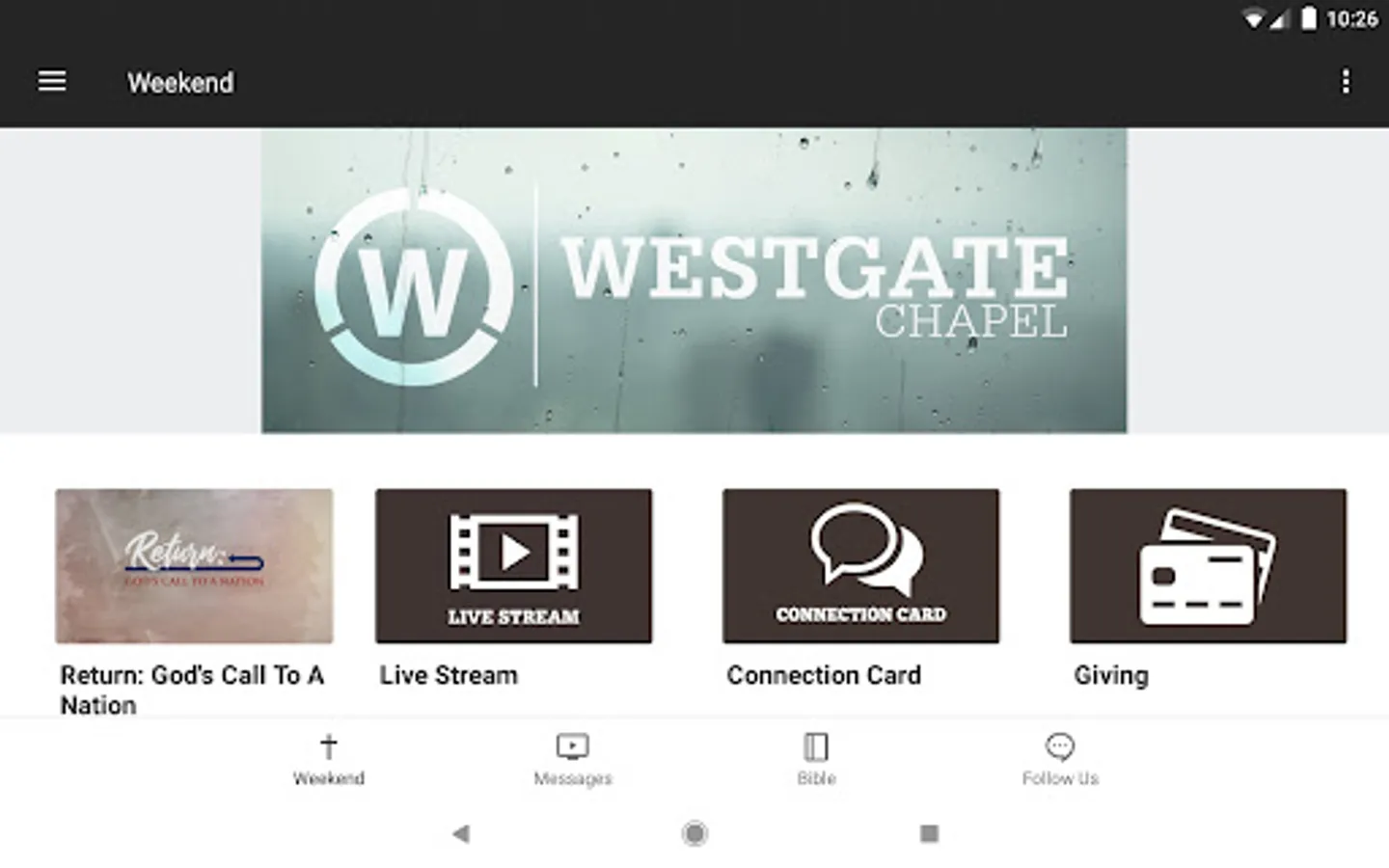 The Westgate Chapel app was developed with the Subsplash App Platform.