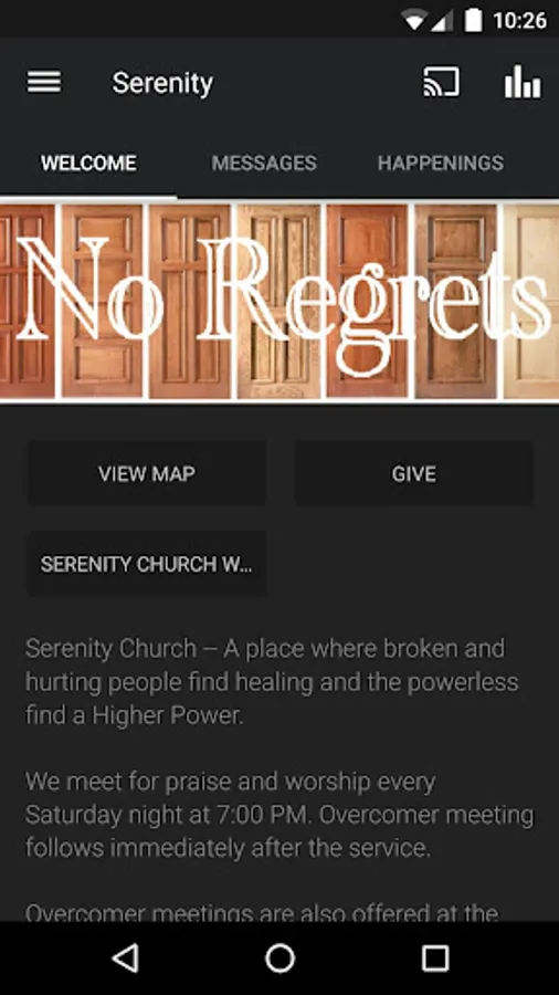 Serenity Church is a 12-step Recovery Church offering a safe place for those suffering from hurts that are out of your control. Through this App you can connect with Serenity Church and what we are about. Welcome Home!