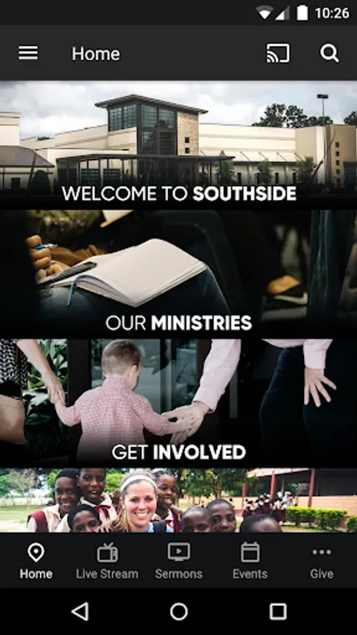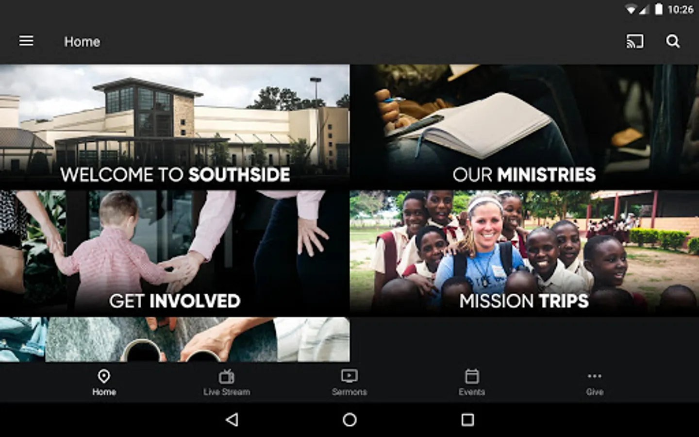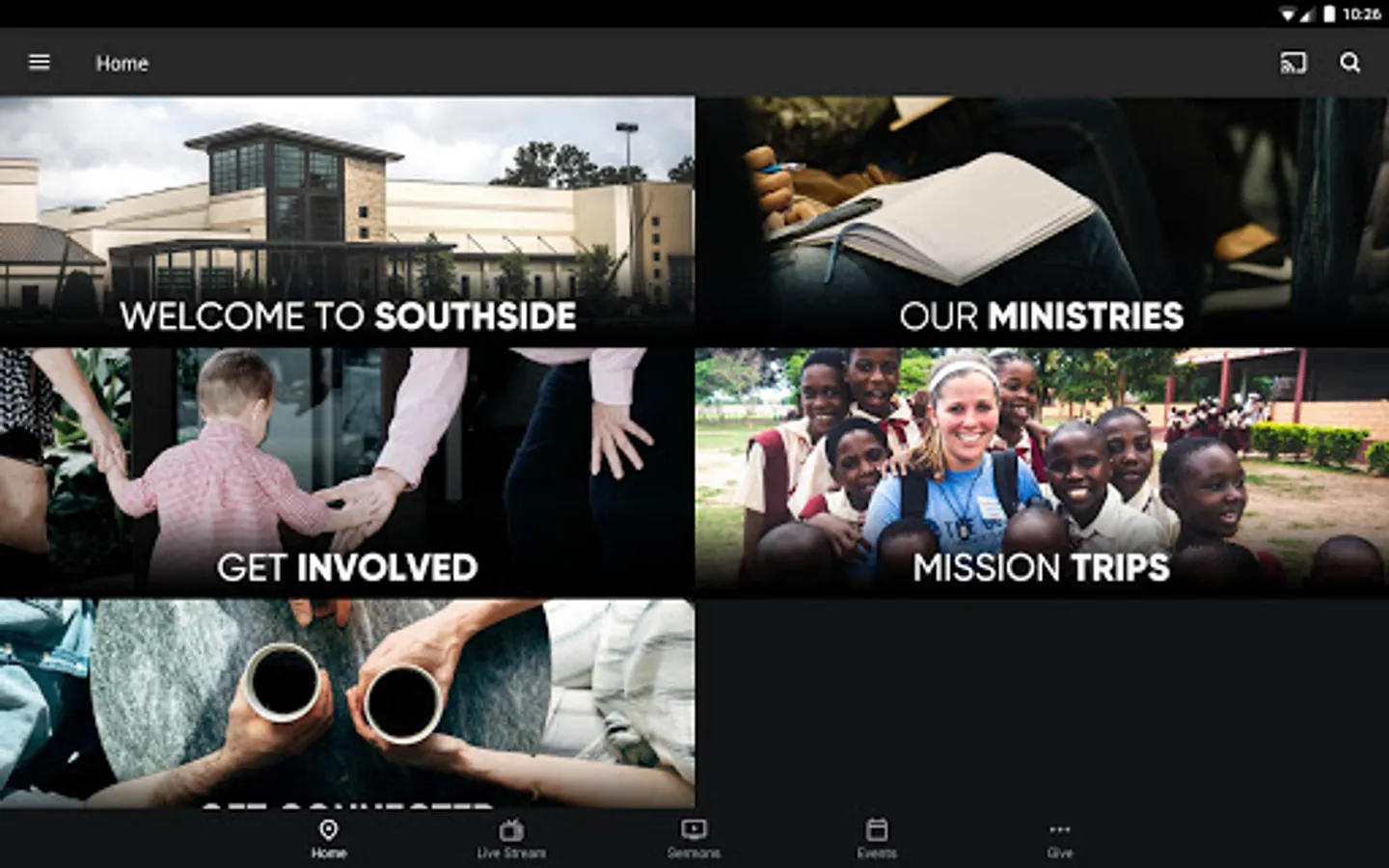 The Southside Baptist Church App was created with the Subsplash App Platform.