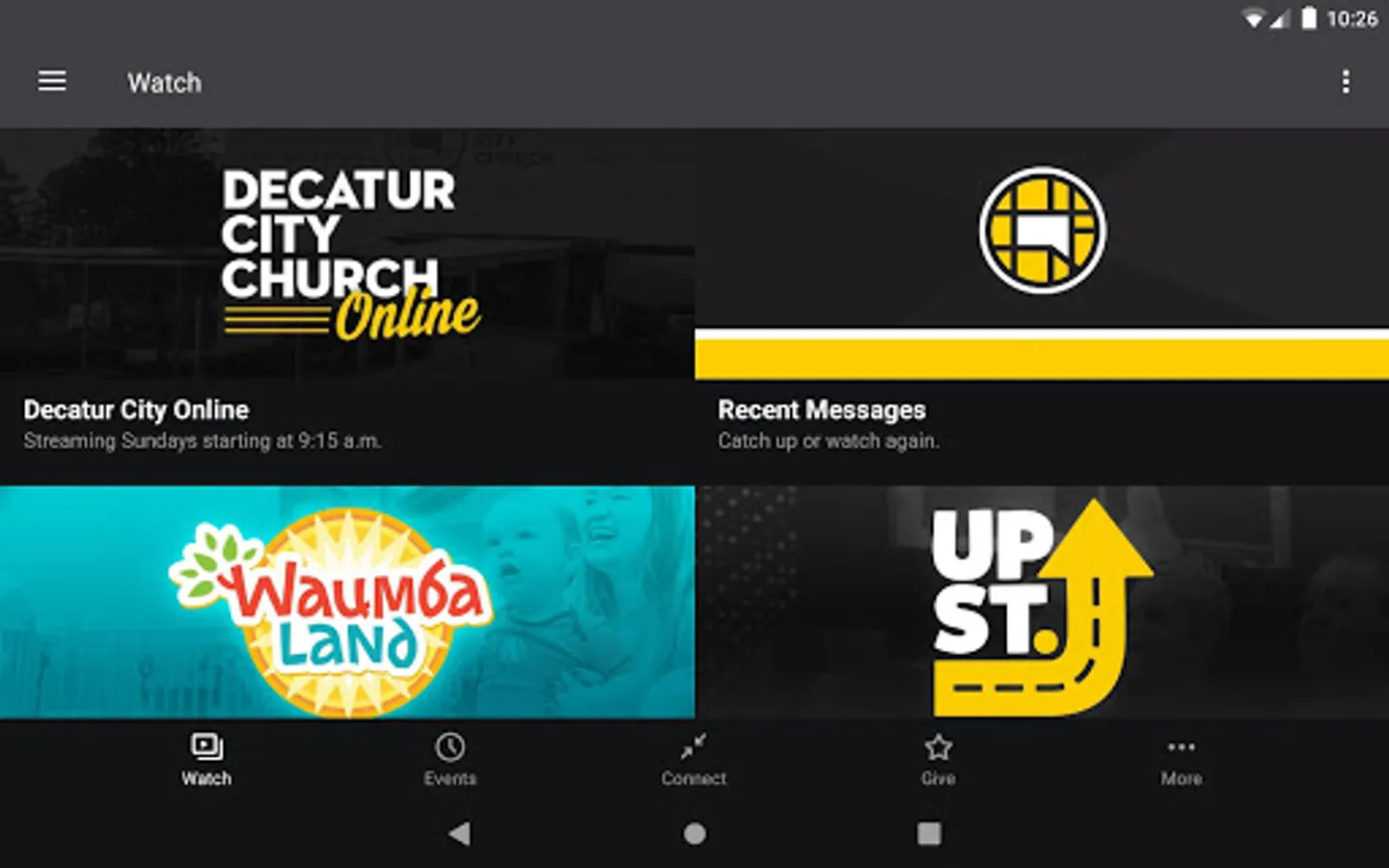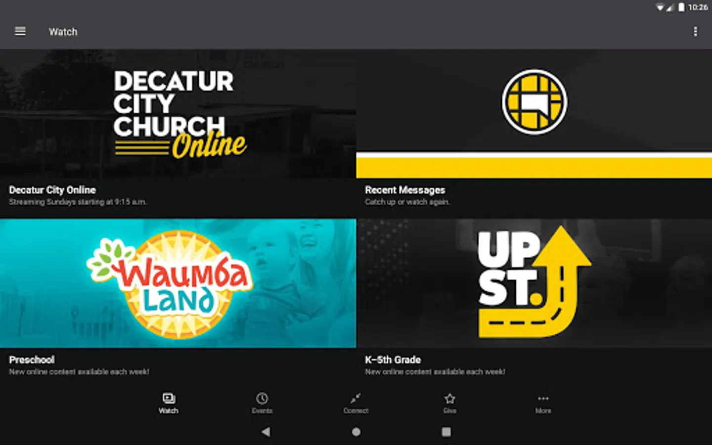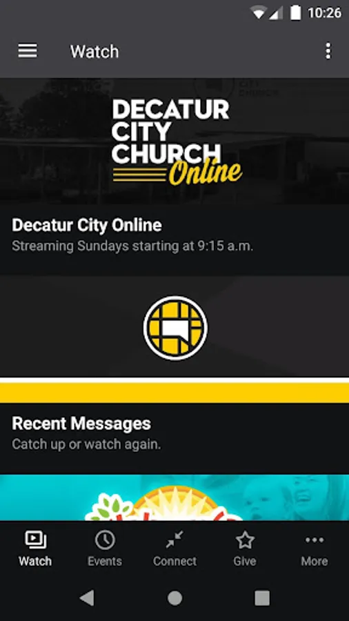 The Decatur City Church App was created with the Subsplash App Platform.