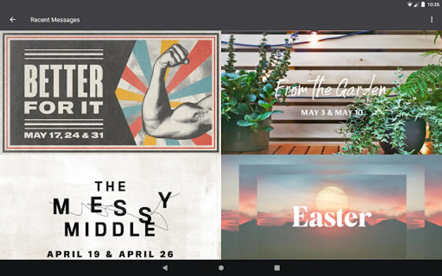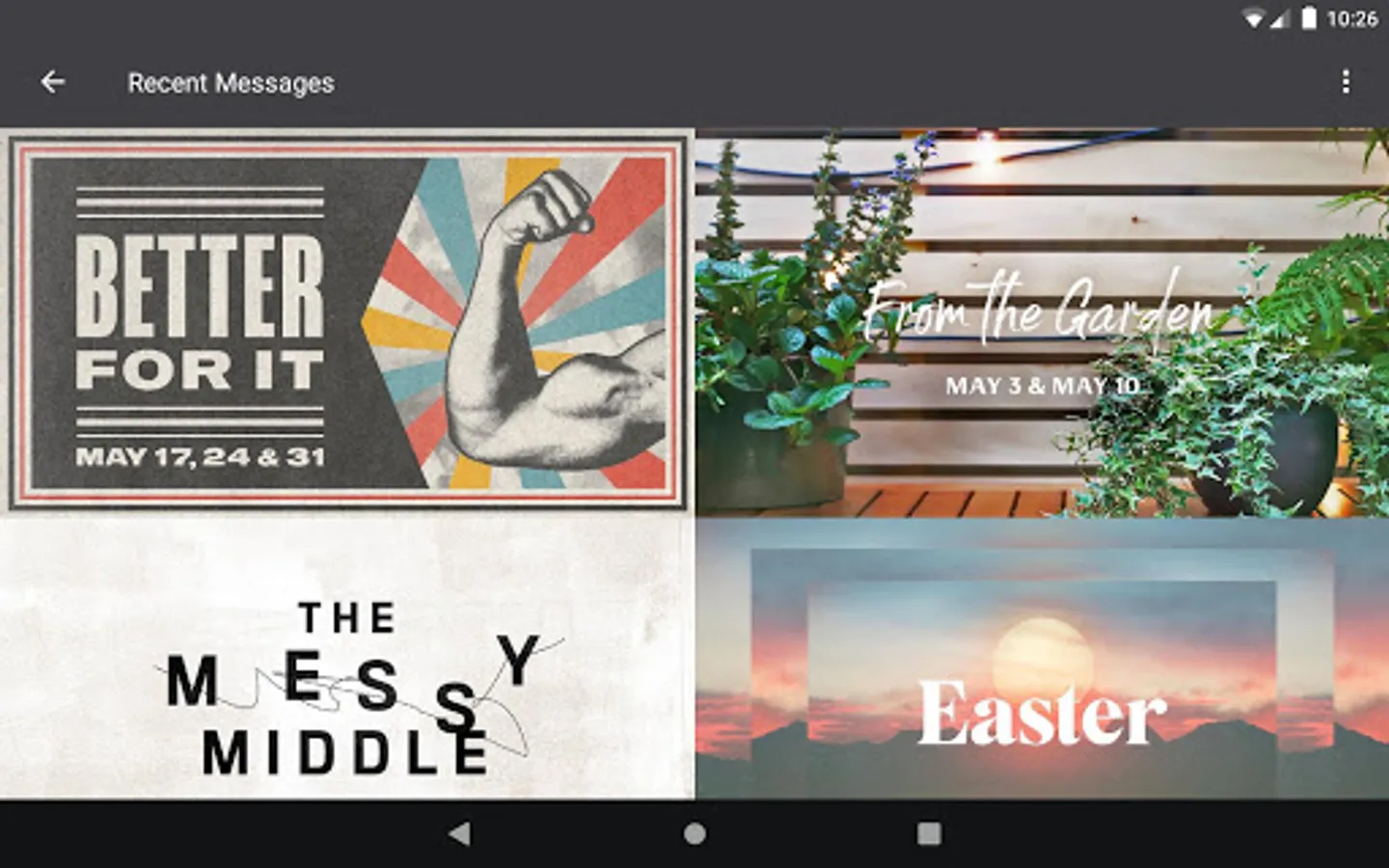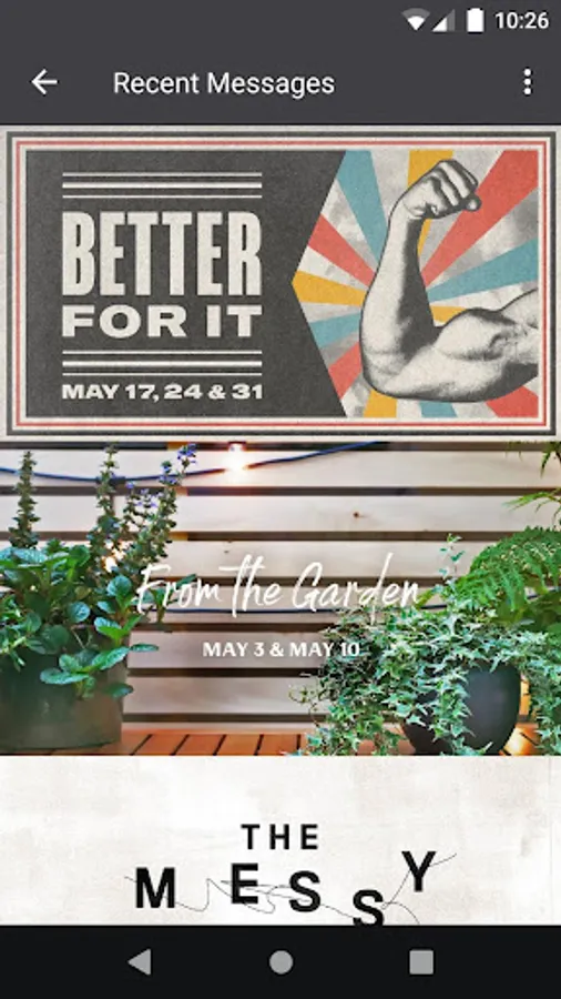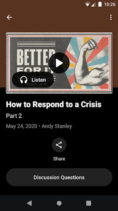 - Download, queue, and play audio-only versions of Sunday messages.