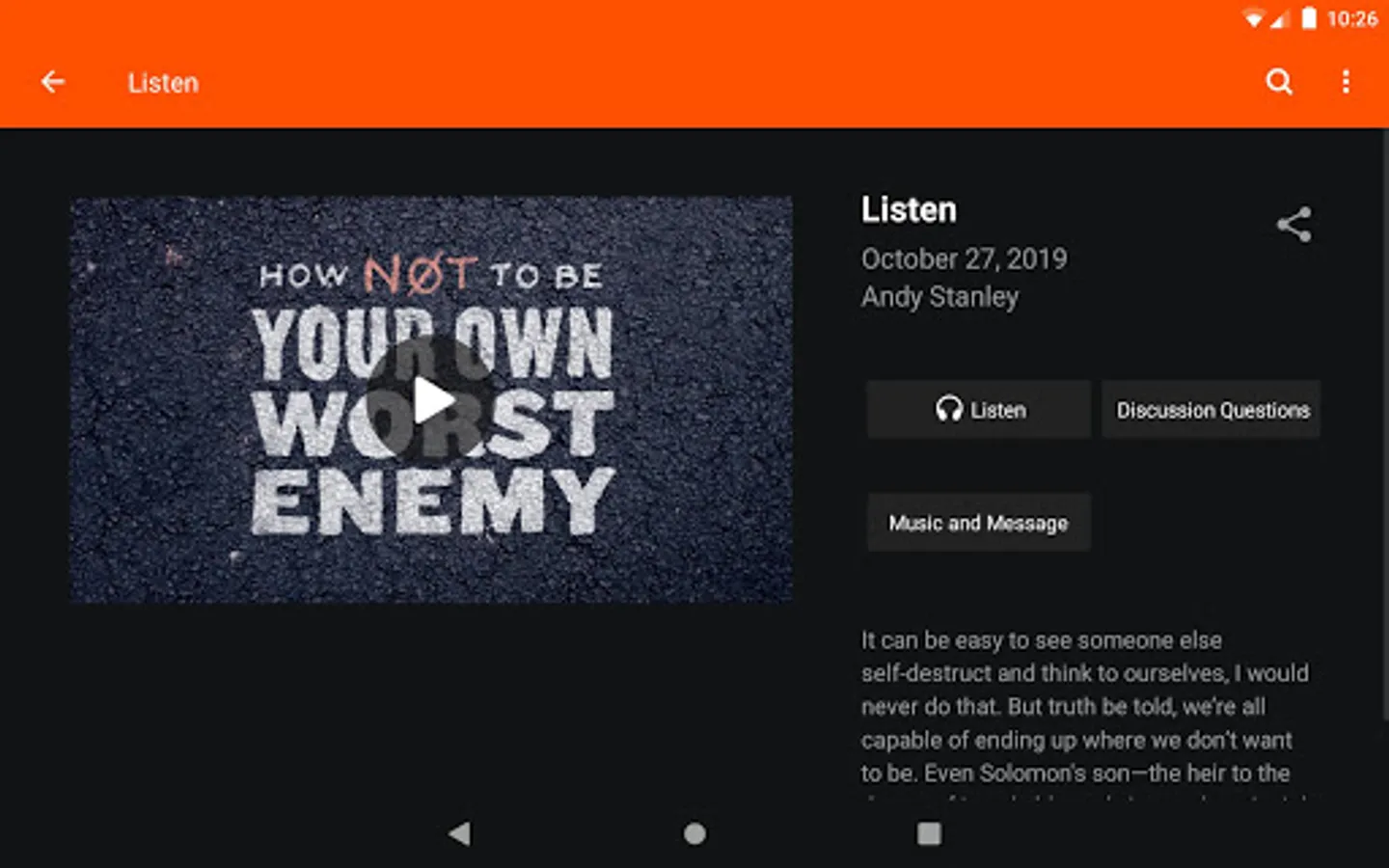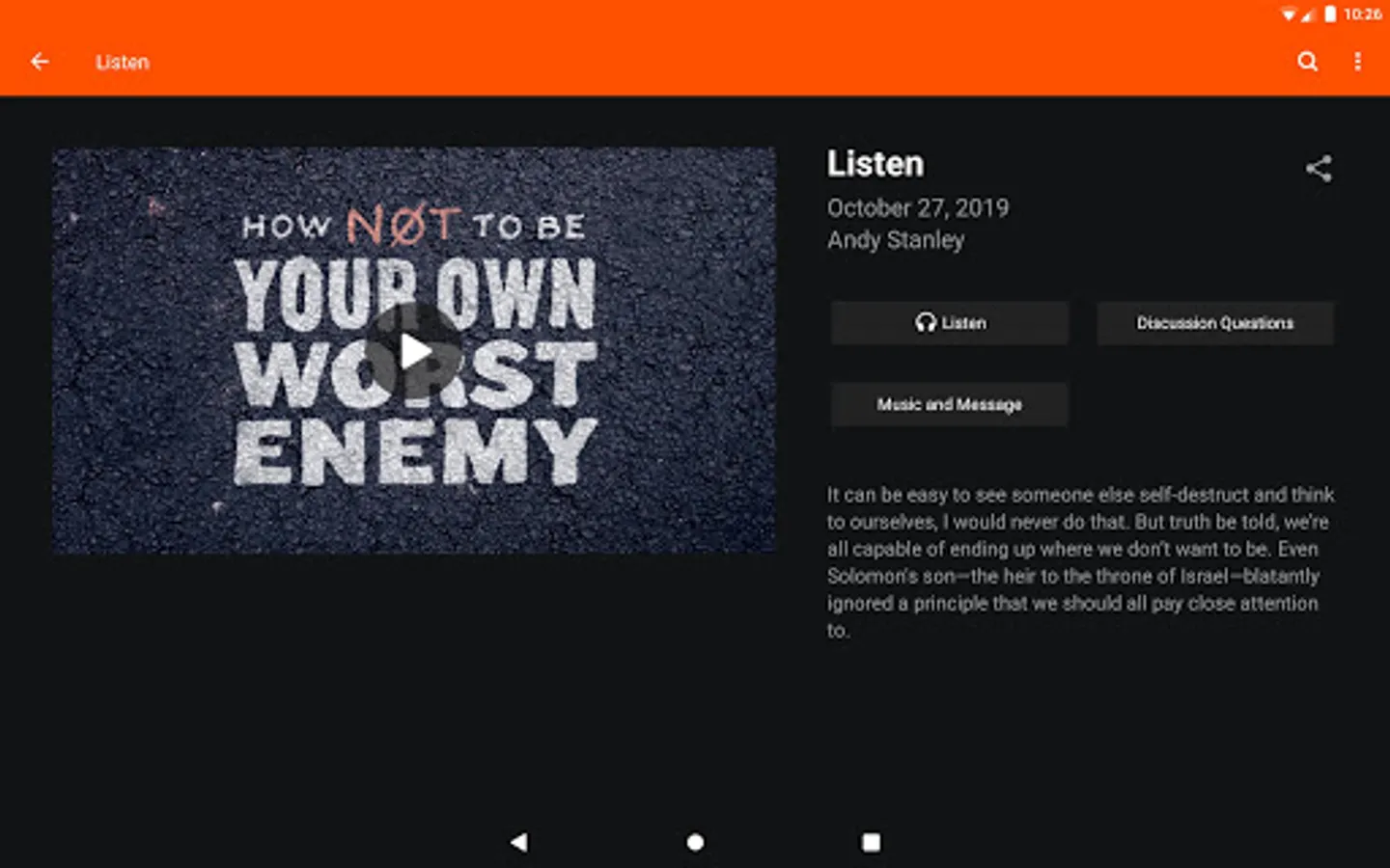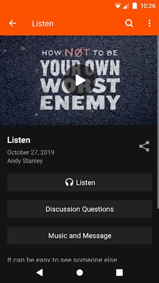 - Download, queue, and play audio-only versions of Sunday messages.