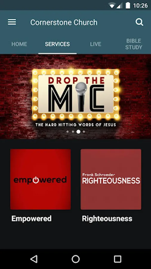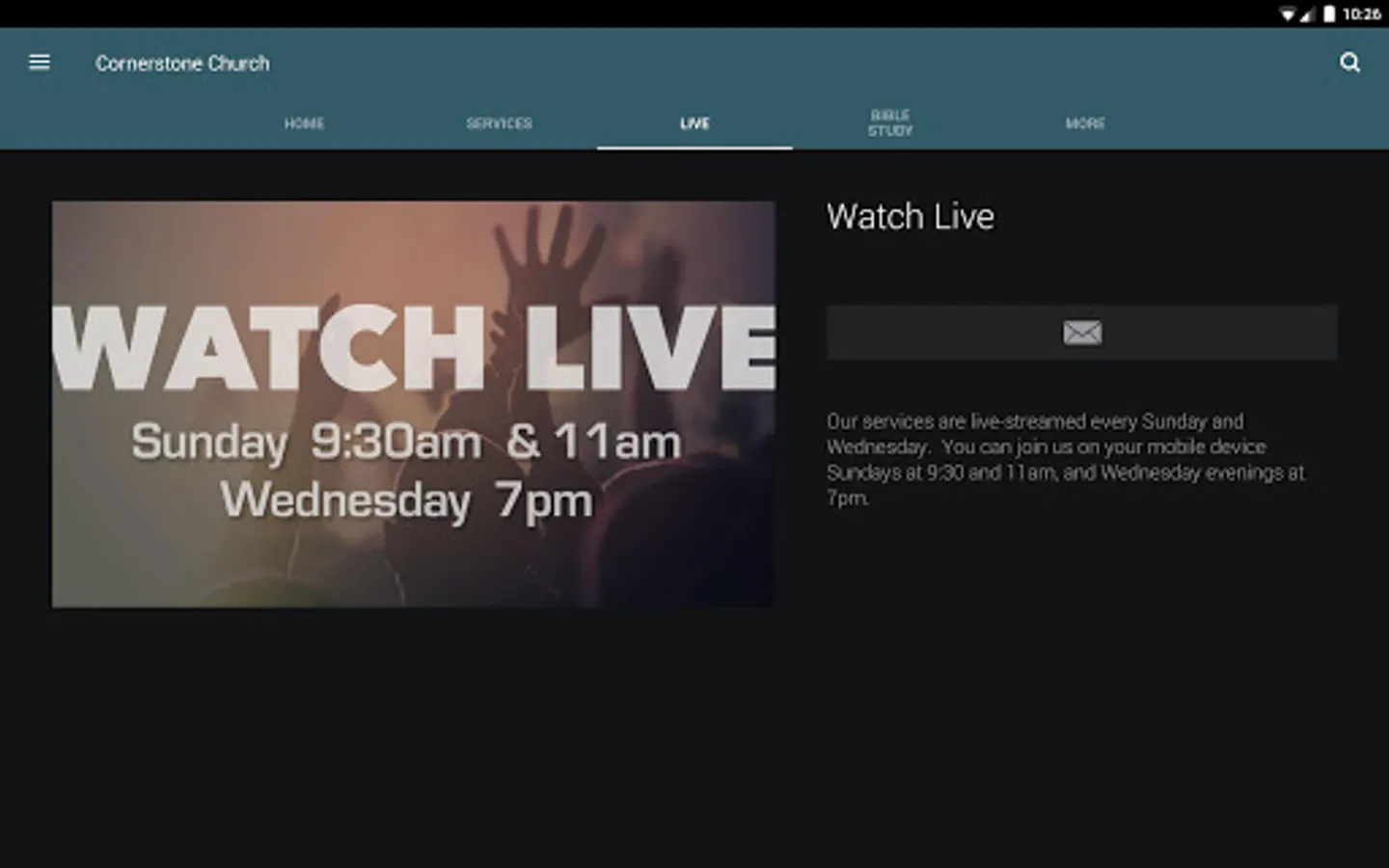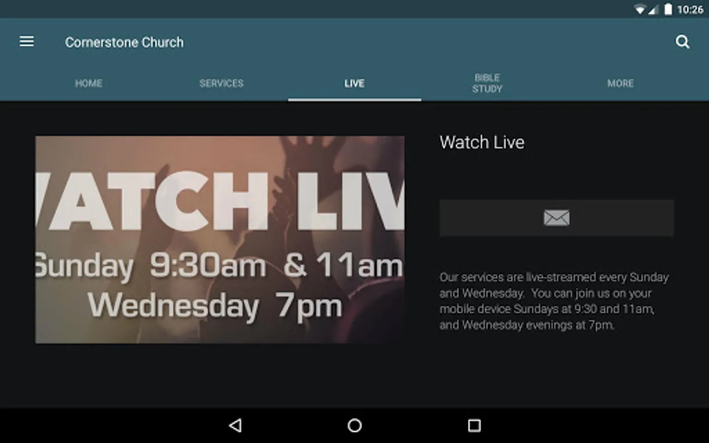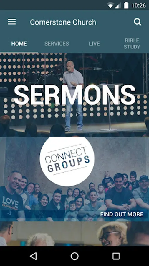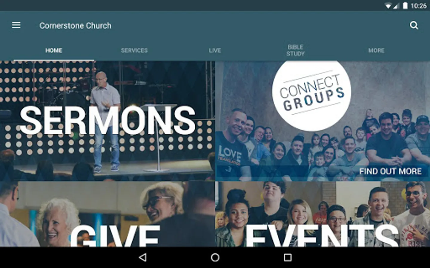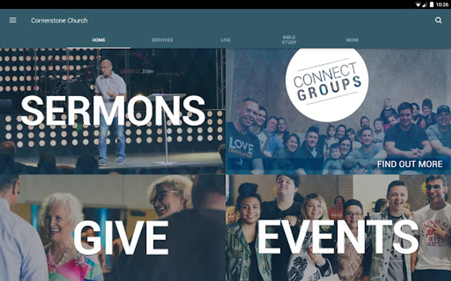 The Cornerstone Church app was developed with the Subsplash App Platform.