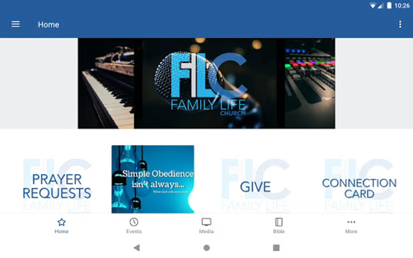 The Family Life Church of Amarillo app was developed with the Subsplash App Platform.